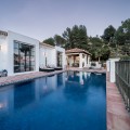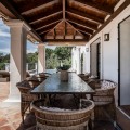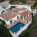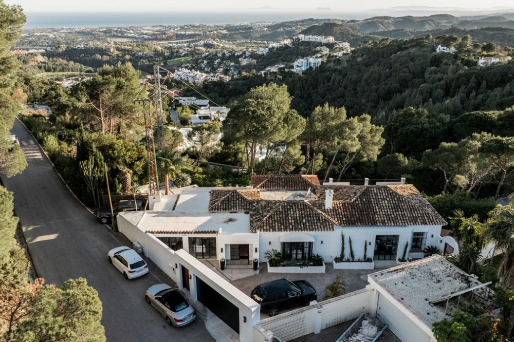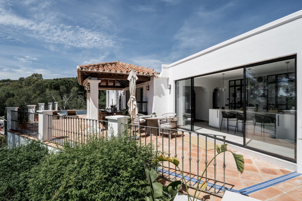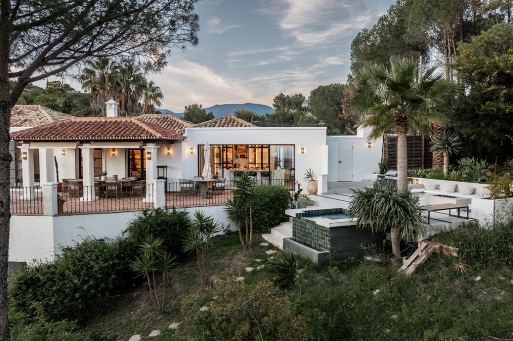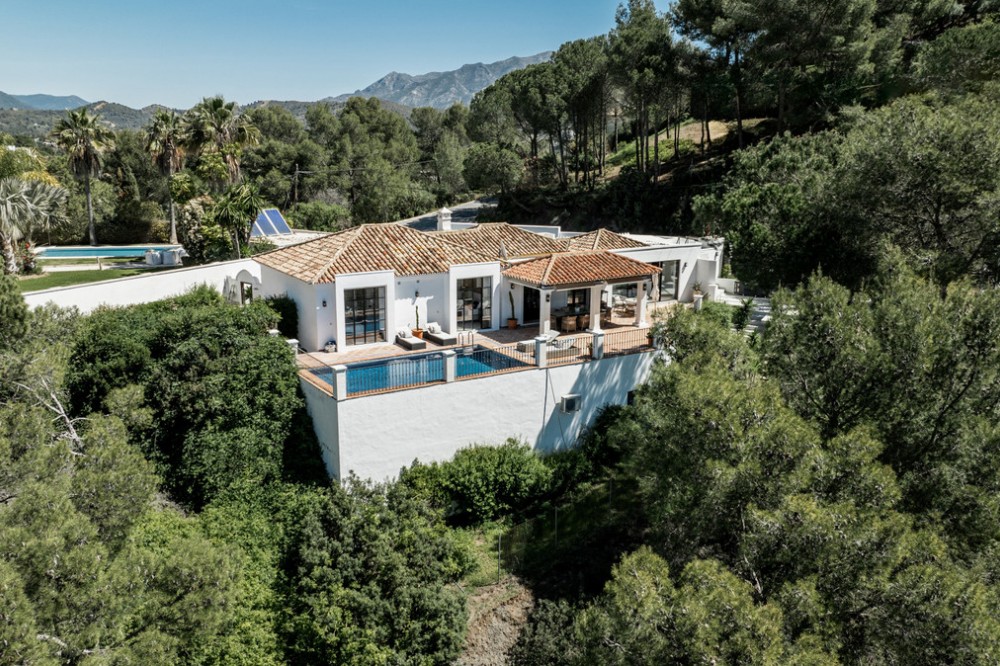 • Atop the charming Andalusian village of Benahavís, 400 metres above sea level and surrounded by the Sierra de las Nieves and lush greenery, lies this haven. In an exclusive gated community, this splendid villa, inspired by traditional Spanish cortijos, stands nestled amidst a forest of pine and cork trees. With walls clad in brilliant white lime and red-tiled roofs, this retreat offers incredible sea views and the feeling of being immersed in nature, all just 20 minutes away from Marbella. Spread across a single floor of 255 m², it combines a cosy home atmosphere with immense windows that blend the indoors with the surrounding environment. The vast living and dining area integrates with a fully fitted kitchen, where cooking with a view has never been such a pleasure. The spacious countertop becomes a central gathering point. The living room and kitchen open onto a spacious terrace that extends along the property's rear perimeter. This open-air space is a magnet for unforgettable moments. A large pool and an infinity jacuzzi invite swimming with a view of the Mediterranean. An impressive barbecue area beckons for dinners with loved ones, and a shaded area ensures enjoyment of the outdoors even during the hottest hours. For rest, there are four bedrooms, three en-suites, and one additional bathroom, all heated with underfloor heating, ensuring comfort and privacy. The warmth is achieved through the careful curation of materials: white walls, terracotta floors, wooden details, artworks, and space to accommodate many guests, even in winter by the fireplace that defines the living room. Along with its unique style and design, the villa offers parking for three cars and top-quality finishes. What you see is what becomes part of your new life, as this home is sold fully furnished. Beyond the house, the area is perfect for outdoor activities such as hiking, horseback riding, and bird watching, thanks to its proximity to natural parks and reserves. For golf lovers, the nearby urbanisation offers membership (non-residents are welcome) to two stunning 18-hole golf courses with views of the sea and mountains. For food enthusiasts, Benahavís is often referred to as the "Dining Room of the Costa del Sol" due to its abundance of high-quality restaurants and gastronomic delights. A drive of 8 km leads to San Pedro Alcántara, where you'll find a wide range of restaurants, shops, schools, and supermarkets. A few minutes further, you can enjoy elegant shopping or stroll along the Mediterranean in Puerto Banús.