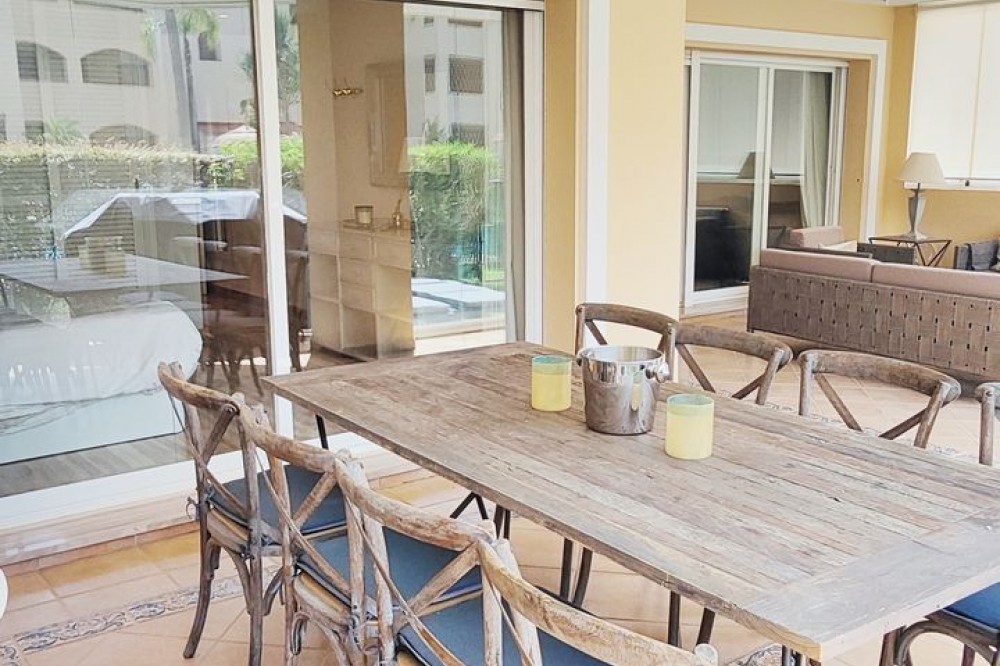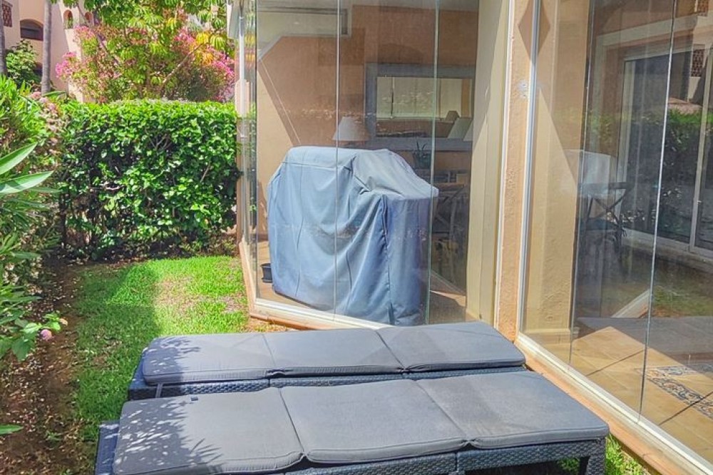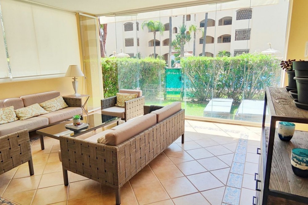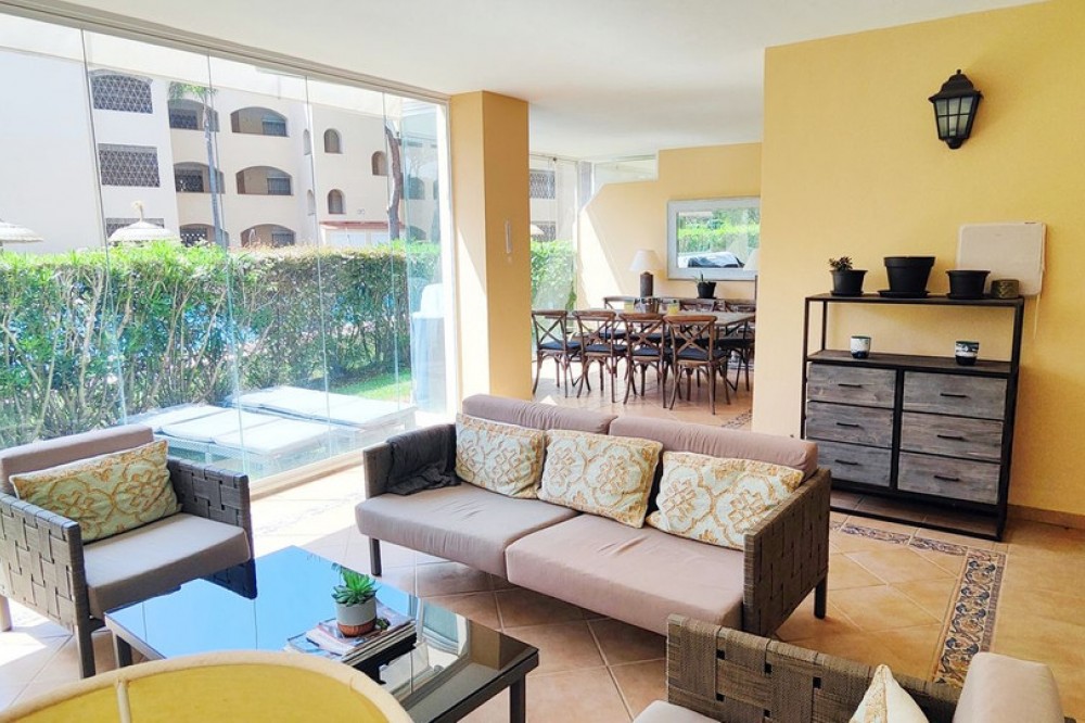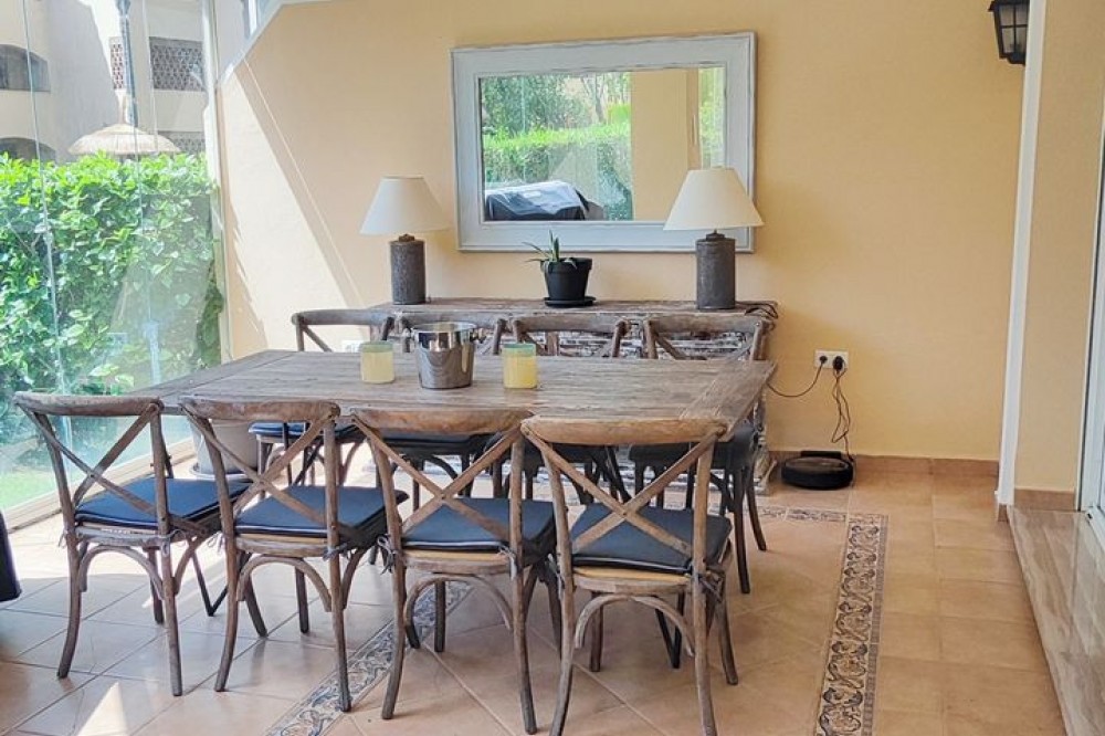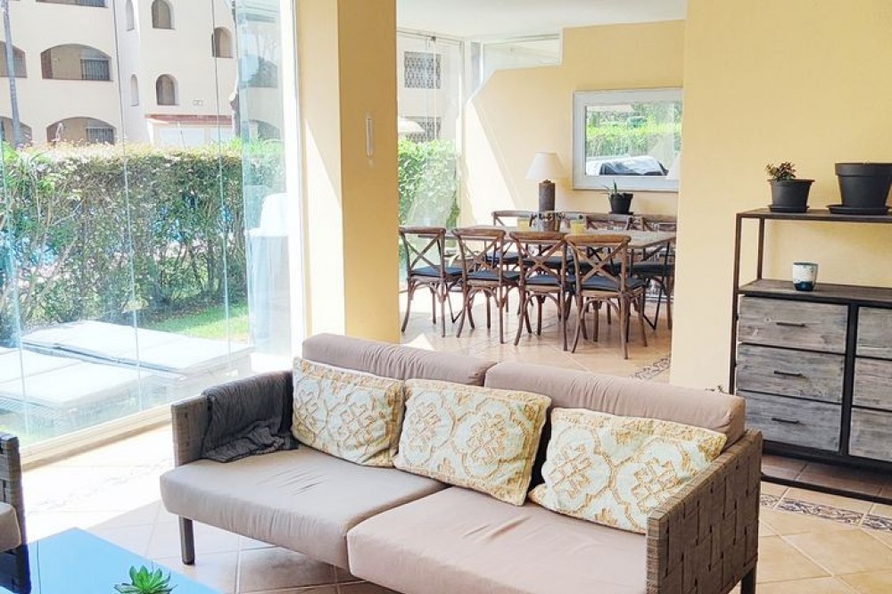 • Discover Your Oasis in Marbella! This charming ground floor apartment with 3 bedrooms and 2 bathrooms is located in the exclusive Elviria area, one of the most prestigious areas of the Costa del Sol. Situated within walking distance of the iconic Hotel Don Carlos and the renowned Marriott hotel chain, this apartment offers you a luxurious lifestyle. Just steps away from Nikki Beach, one of the most famous beach clubs in the region, you can enjoy the best beaches of Marbella. Community features lush gardens, sparkling pools, and the tranquility you seek. Additionally, the price of €610,000 includes parking and storage. The apartment boasts an open kitchen to the living room, creating a spacious and modern environment, ideal for enjoying moments with family or friends. The covered terrace is perfect for relaxing outdoors, and the private garden adds a touch of nature and privacy to your home. Don't miss the opportunity to live in one of the best areas of Marbella, just 300m from the beach and all high-quality services within your reach. Come and experience the true coast al paradise!