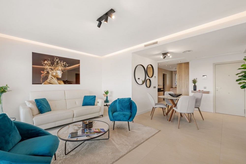 - **The property holds a valid short-term holiday rental licence, making it a solid option for personal use and rental income.** Discover this exceptionally bright middle-floor apartment featuring 2 bedrooms and 2 bathrooms, complete with an expansive terrace and panoramic views. Ideally situated within walking distance of the La Cala Golf Clubhouse and its facilities, this property offers both convenience and luxury. Step into the open-concept living and dining area, bathed in natural light from floor-to-ceiling windows that span the entire length of the room. The modern, fully equipped kitchen seamlessly connects to the dining and terrace areas, making it perfect for outdoor living and entertaining. The bedrooms come with fully fitted, built-in wardrobes to ensure ample storage. The bathrooms feature high-quality finishes and large showers. Stay comfortable year-round with an efficient air conditioning system, and benefit from an Energy Efficiency C rating, complemented by solar panels for hot water. The property includes 2 underground garage spaces and a storage room for added convenience. Residents also have access to beautifully maintained communal gardens and a swimming pool. This property is an excellent holiday home or investment for rentals!