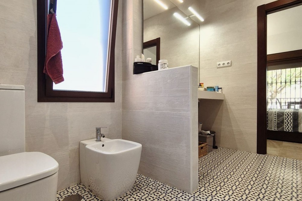 - Discover this stunning Mediterranean-style home, located just a few meters from the sea. This charming residence offers an unbeatable location, with restaurants nearby and a seaside promenade within easy walking distance. The house features five spacious bedrooms, five full bathrooms, and an additional guest restroom, all designed to provide maximum comfort. Radiant floors and an advanced aerothermal system ensure a warm and inviting atmosphere year-round. Upstairs, three bedrooms boast en-suite bathrooms, offering a touch of luxury and privacy. Recently renovated, the property sits on a generous 750-square-meter plot, providing ample outdoor space. With a total built area of 280 square meters, every corner of this home combines elegance and modernity. Moreover, there's the possibility to add a beautiful swimming pool, perfect for enjoying the sunny Mediterranean climate. This is a unique opportunity to live in a privileged environment, where modern comfort meets traditional charm. Detached Villa, San Pedro de Alcántara, Costa del Sol. 5 Bedrooms, 5.5 Bathrooms, Built 280 m², Garden/Plot 750 m². Setting : Town, Beachside, Close To Golf, Close To Port, Close To Shops, Close To Sea, Close To Schools. Orientation : South, West. Condition : Excellent, Recently Renovated. Pool : Room For Pool. Climate Control : Air Conditioning, U/F Heating. Views : Garden, Courtyard. Features : Covered Terrace, Fitted Wardrobes, Near Transport, Private Terrace, Storage Room, Utility Room, Ensuite Bathroom, Basement, Fiber Optic. Furniture : Fully Furnished. Kitchen : Fully Fitted. Garden : Private, Easy Maintenance. Security : Electric Blinds, Entry Phone, Alarm System. Parking : Covered, Private. Utilities : Electricity, Drinkable Water, Photovoltaic solar panels. Category : Beachfront, Golf, Holiday Homes, Investment, Luxury, Contemporary.
