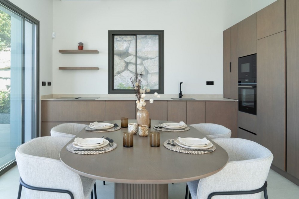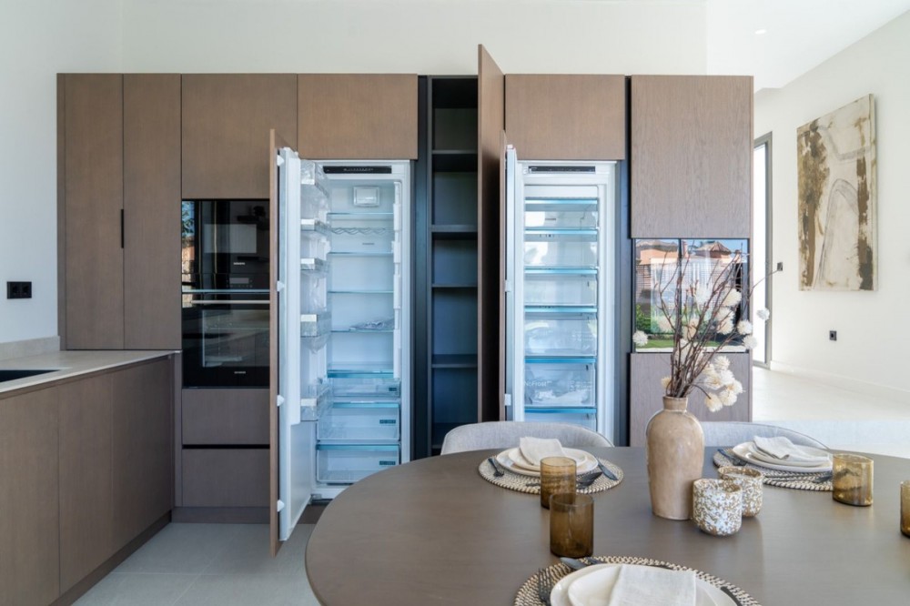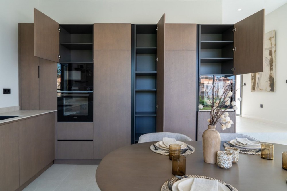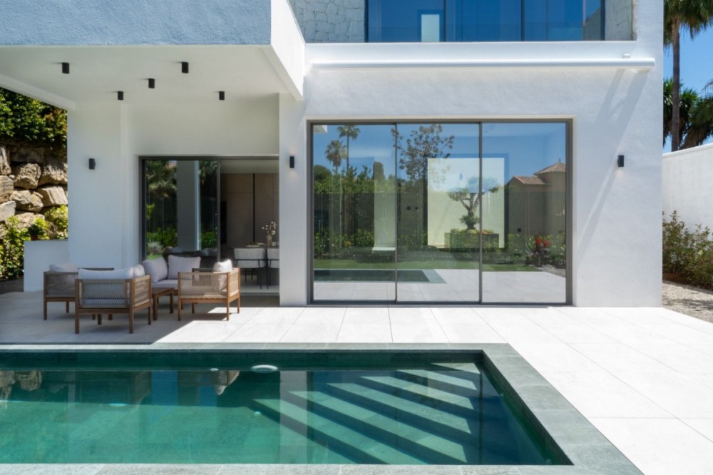 - We present you a spectacular luxury villa in Estepona, ideal for those who value comfort, bright spaces and sustainability. This architectural gem WITH SPECTACULAR VIEWS OF GIBRALTAR; is distributed around a double-height main volume and extends over three levels: ground floor, upper floor and basement. This home offers a sophisticated and functional design that will make you fall in love from the first moment. On the ground floor, you will find a welcoming entrance hall, cloakroom, en-suite bedrooms with bathroom and dressing room, a dream kitchen-dining room, a spacious living room and a main porch that opens onto a magnificent outdoor skimmer pool with pre-installation for a heat pump. The upper floor houses the master bedroom with the option of converting the second bedroom into a library and a terrace to enjoy the views. The basement is presented raw, except for the machine room, offering a blank canvas to personalize to your liking. The villa has an outdoor parking area, a porch and solarium area, as well as a garden with programmed automatic irrigation and programmed lighting. Equipped with TV/FM antenna, digital video intercom, air renewal system and air conditioning installation in the basement, every detail has been carefully thought out for your comfort.