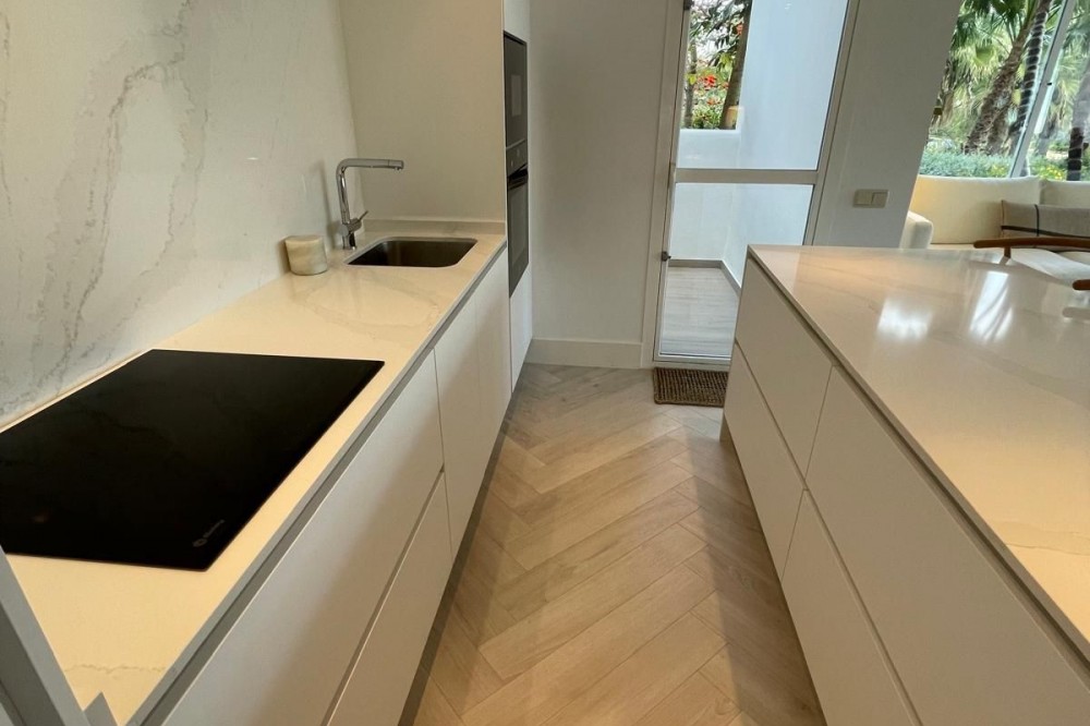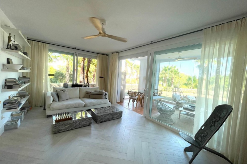 - A beautifully renovated garden apartment with tropical views located within a gated community, home to a state-of-the-art 1,4 hectare lagoon with sandy beaches, water sports and restaurants - 6 unlimited lifetime passes included with the property sale. The property has been totally modernised with feature herringbone wooden floors throughout, brand new kitchen with island and bespoke marbleware bathrooms. There are 3 double bedrooms and 2 bathrooms and the property enjoys a large garden in a very private area of the grounds which is truly spectacular at nighttime due to the communities recent investment in a brand new lighting system - magical! 1 parking space and 1 storage room included. Contact us today for a viewing!