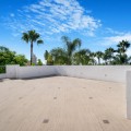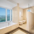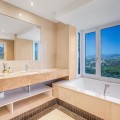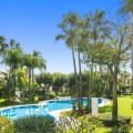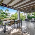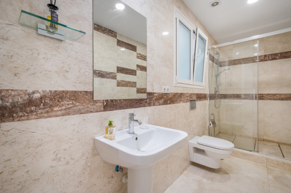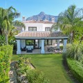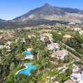 - Renovation Opportunity - Four bedroom south-facing villa, located in the prestigious Village Las Lomas de Magna Marbella complex on Marbella's Golden Mile. The villa is the perfect renovation project with the community offering 24-hour security service, two large community pools, and lush tropical gardens of exceptional beauty. The villa enjoys a prime location, close to all amenities, including supermarkets, shops, restaurants, schools, and golf courses, and is only a five-minute drive from the sea. The property spans three floors. The main floor features a spacious entrance hall, a living room with direct access to the terrace and garden, a well-proportioned kitchen, a dining room, a bright bedroom with an en-suite bathroom, and a guest toilet. The upper floor comprises the master suite and a guest suite, both with access to a large terrace with partial sea views. The lower level includes two additional bedrooms sharing a bathroom, a laundry room, a large multipurpose room, and direct access to the garage. Additional features include hot and cold air conditioning, underfloor heating, an elevator connecting all levels, a domotic system, and a private garage for two cars. Please note that the villa is in need of some renovations and is offered unfurnished, allowing you the opportunity to update and personalize it to your taste. The materials used in its construction and interior decoration are of the highest quality, reflecting the luxury of this property.