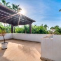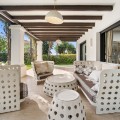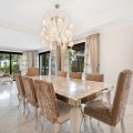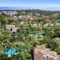 - Renovation Opportunity - six-bedroom south west facing villa, located in Lomas de Magna Marbella, one of the most prestigious complexes on Marbella's Golden Mile. The villa is the perfect renovation project and is situated within a gated community that offers 24-hour security service, two large communal pools, and lush tropical gardens of incredible beauty. It is conveniently located close to all amenities, including supermarkets, shops, restaurants, schools, and golf courses, and is only a five-minute drive from the sea. This incredible property spans three floors. The main floor features an entrance hall, a spacious living room with direct access to a semi-covered terrace that includes tropical gardens with dining spaces and a chill-out area, as well as a private exit to the communal pool. There is also a bright bedroom with an en-suite bathroom, a well-proportioned kitchen, and a guest toilet on this floor. The upper floor has three bedrooms, each with an en-suite bathroom, and a sunny terrace with partial sea views. The basement comprises two additional bedrooms with bathrooms, a games room, a laundry room, a sauna, a hammam, and a garage with enough space for four cars. The house also has its own elevator. Please note that the villa is in need of some renovations and is offered unfurnished, allowing you the opportunity to update and personalize it to your taste. The materials used in its construction and interior decoration are of the highest quality, reflecting the luxury of this property.