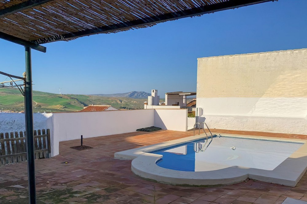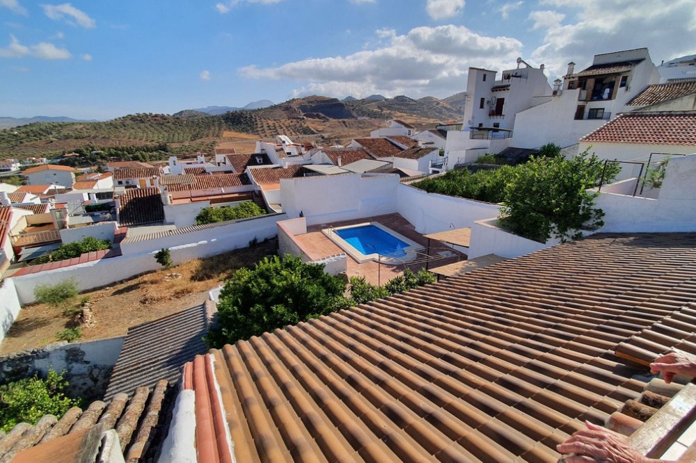 - Located in the very centre of Ardales, this magnificent property offers enormous potential, whether you're looking for a spacious family home or a project to develop a B&B or boutique hotel. Just steps away from the town hall and local shops, this 700m² house stands out for its traditional charm and endless possibilities. The house currently features 4 bedrooms and 3 bathrooms, but its layout allows for the creation of several additional rooms, including the possibility of an independent apartment on the top floor. The property has undergone partial renovations while maintaining its original character with thick walls, clay hydraulic floors, high beamed ceilings, and traditional wooden doors. Two of the bedrooms have been refurbished and include en-suite bathrooms and built-in wardrobes. At the heart of the house is a charming Andalusian patio that not only fills the rooms with light but also provides access to the pool area and a private orchard, ideal for creating a beautiful garden. The property also features an old stable that could be converted into bedrooms or common areas. On the top floor, there is a spacious, open-plan attic, the former hayloft, offering the potential for more rooms and access to a terrace with spectacular views of the valley and the village. If you are looking for a large property or a business project in a tourist town like Ardales, known for the Caminito del Rey and the Gaitanes Natural Park, this house offers endless possibilities.