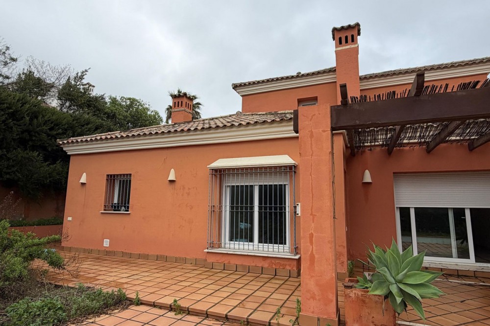 - This luxurious and spacious villa spans 490m2, plus terraces and porches, situated on a 1,293m2 plot offering stunning views, near Almenara Golf. Built to the highest standards across three levels, the bright villa features 4 bedrooms (including a master suite with walk-in dressing room), 4 en-suite bathrooms, and a guest toilet. The large 47m2 living room, complete with an open fireplace, opens onto beautiful south-west facing porches. Additional spaces include a separate dining room, a fully equipped kitchen with high-end appliances and a breakfast area, as well as a laundry room. The property benefits from air conditioning (hot/cold), underfloor heating throughout, marble flooring, double-glazed windows, satellite TV, and telephone. It also includes an underground garage for two cars. The beautifully landscaped gardens are equipped with automatic irrigation, lighting, and a swimming pool. This delightful villa is just a five-minute drive from Sotogrande’s main golf courses and marina, with all its amenities and services.