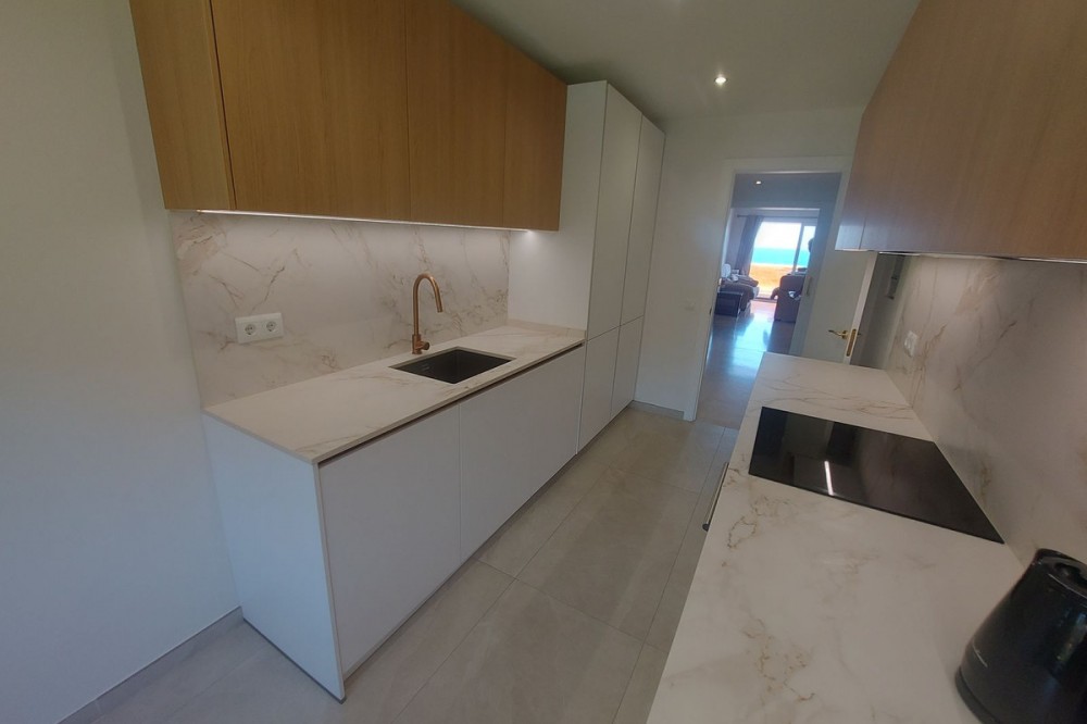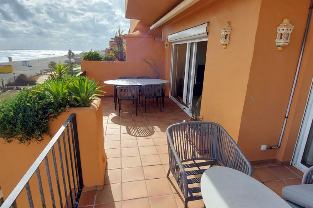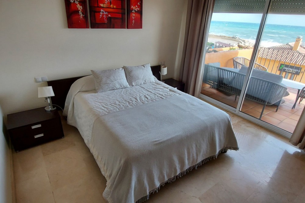 - Urb. Los Granados - Sought after front line Beach development. A well presented modernised (new top of the range kitchen) front line beach 2 bedroom corner apartment with uninterrupted beach and sea views from the terrace. The complex is located on the beachfront with a large lagoon style swimming pool set in spacious grounds. The complex also has underground parking, 24hr security and is a short walk along the beach to the fishing village of Castillo and Duquesa marina. Middle Floor Apartment, La Duquesa, Costa del Sol. 2 Bedrooms, 2 Bathrooms, Built 119 m², Terrace 22 m². Setting : Beachfront, Beachside, Close To Golf, Close To Port, Close To Shops, Close To Sea, Close To Marina, Urbanisation, Front Line Beach Complex. Orientation : South East. Condition : Excellent. Recent renovation. Pool : Communal. Climate Control : Air Conditioning, Hot A/C, Cold A/C. Views : Sea, Beach, Panoramic. Features : Covered Terrace, Lift, Fitted Wardrobes, Near Transport, Private Terrace, Satellite TV, ADSL / WIFI, Storage Room, Utility Room, Ensuite Bathroom, Marble Flooring, Double Glazing, Fiber Optic. Furniture : Optional. Kitchen : Fully Fitted. Garden : Communal. Security : Gated Complex, 24 Hour Security. Parking : Underground, Garage. Utilities : Electricity, Drinkable Water, Telephone. Category : Beachfront, Holiday Homes, Investment, Luxury, Resale.