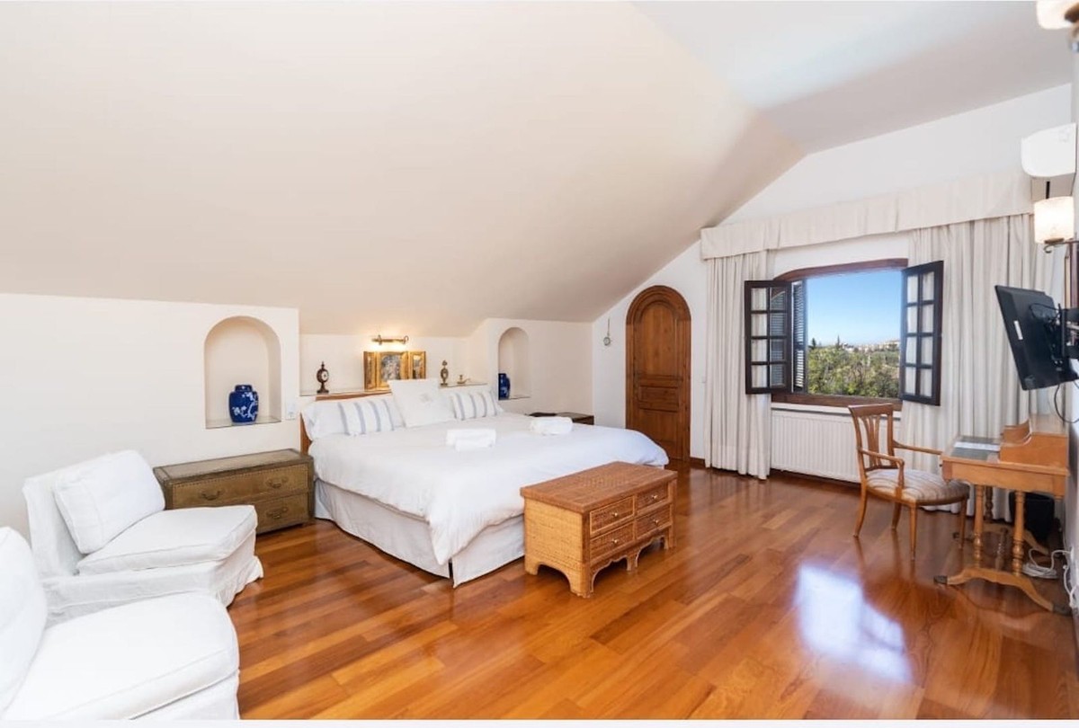 - Spectacular villa of more than 1,200m2 where space abounds, surrounded by a very charming and very well-kept garden (palm groves, trees and beautiful flowers). Composed of 7 bedrooms, 3 bathrooms, 2 toilets, living room with fireplace and air conditioning, separate dining room, kitchen and games room such as billiards or ping pong. Outside, a covered porch of more than 50m2 we find a barbecue area where we can relax with friends or family, a saltwater pool and beautiful garden areas. A unique villa built with the best qualities and exquisite taste. 5 minutes by car from the best beaches in Marbella. Ideal for lovers of this city and the Mediterranean climate or for investors since it has a license for vacation rentals.