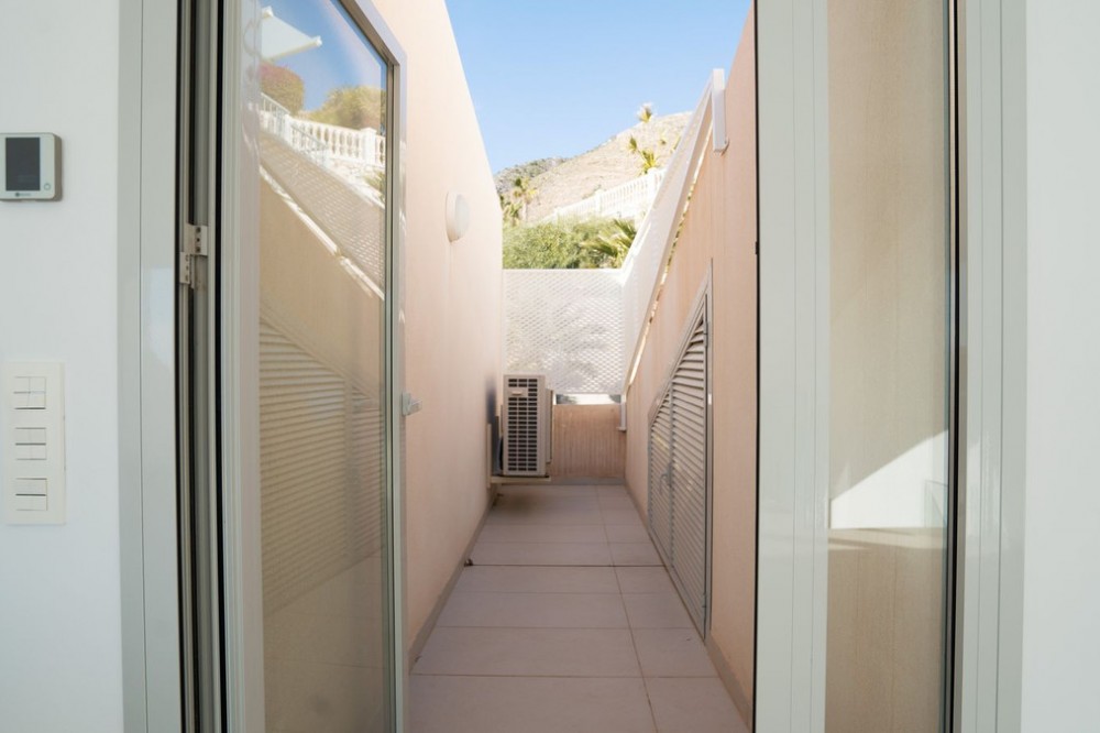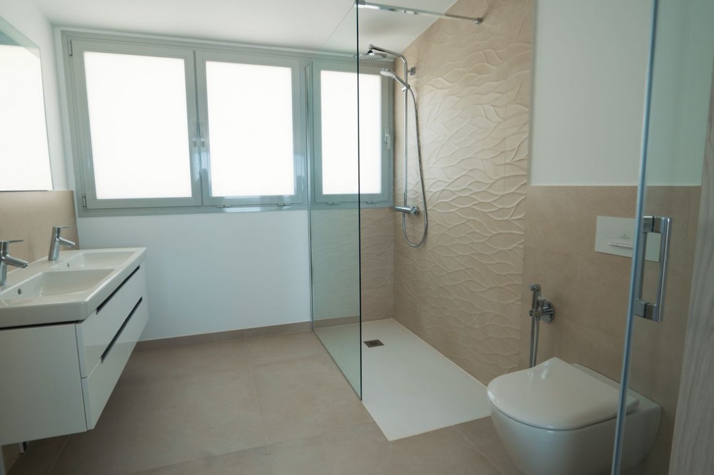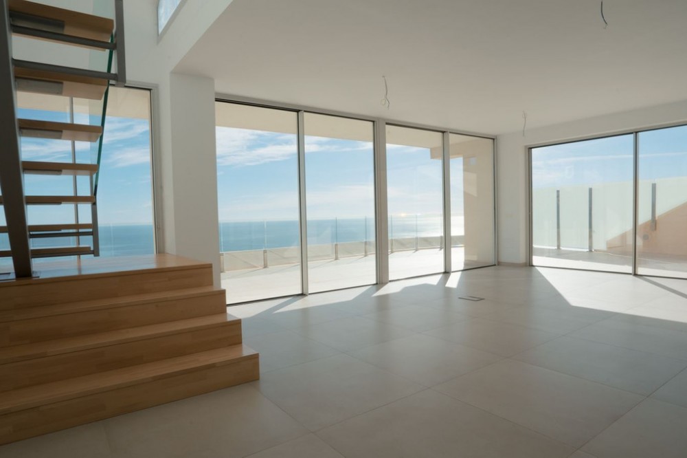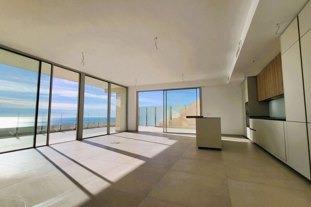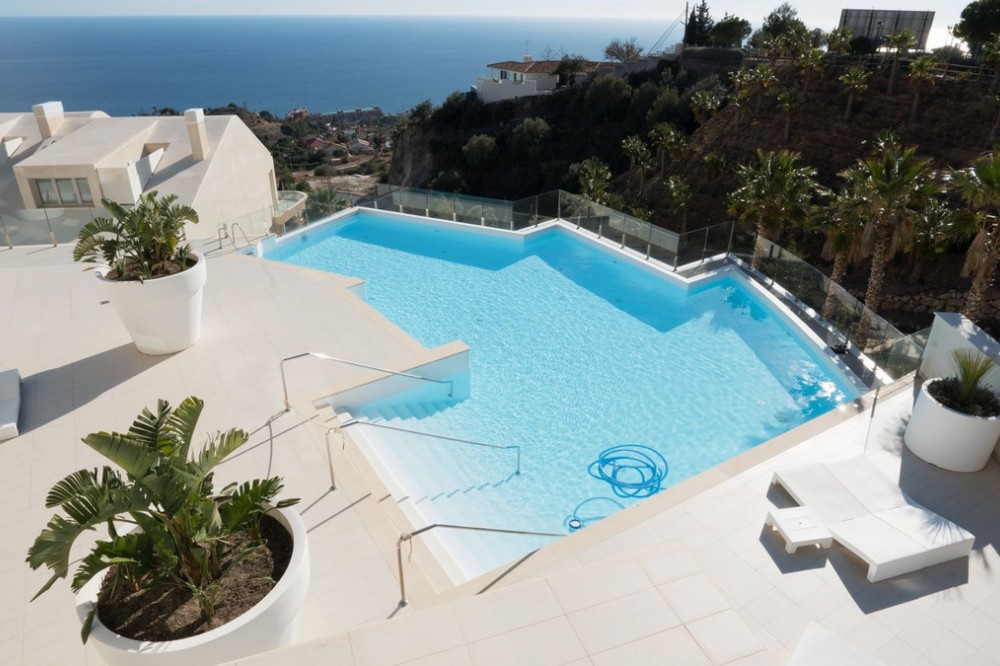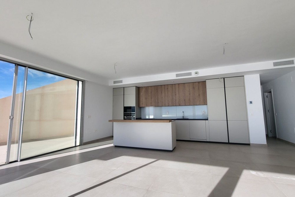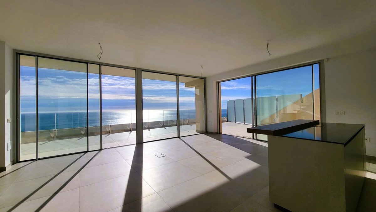 - Brand new south facing penthouse duplex, located in the exclusive urbanization of Stupa Hills. The property consists of hall, 3 bedrooms with built-in wardrobes and electric blinds, bathroom and guest toilet, open plan kitchen fully furnished and equipped with electricial appliances from Siemens. Spacious living-dining room that leads out to a terrace of 65m2 with panoramic sea views, the Fuengirola Bay and of the Buddist Temple. On the top floor is located the main bedroom with walk-in closet, ensuite bathroom and laundry area. The bedroom leads out to a terrace of 21m2 with panoramic sea views. Air conditioning hot and cold with Airzone, video intercom, domotic system, pre-installation alarm system. Includes two parking spaces and one storage room.