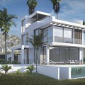 - New Development: Prices from €2,000,000 to €2,000,000. [Bedrooms: 5] [Bathrooms: 5] [Built size: 396m2]. This villa is a new build turnkey villa project situated on a cul de sac in Urb. Buenas Noches (Upper zone) approx. 400 m2 to the beach, with access via a pedestrian bridge, about 15 min. walking distance. The plot size is 692 m2 and boasts panoramic views over the mediterranean sea, with views of the City of Estepona, The mountain of La Concha of Marbella and Sierra Bermeja Mountain of Estepona. You can see the waves crashing on the shore from the property. The property will be built on 3 floors plus the usable solarium. The villa has 4 bedrooms with full on-suite bathrooms, one of them the main master includes a dresser and the rest have built-in wardrobes. Every bedroom has direct terrace access. A double bedroom will be on the ground floor together with an office convertible into a 5th single bedroom if necessary. The basement has over 180 m2 which includes a double parking garage, a cinema/entertainment room, a wine cellar, a storage room, a machine room and a gardeners room for tools and products for the swimming pool maintenance. The infinity swimming pool will have an embedded chill out lounge area, which could be converted into a jacuzzi. The solarium will include a chill out lounge area with a fireburner (ethanol), a glassed gym with fitness machines, a bbq/dining area and a private jacuzzi. The property will have a lift to all floors with panoramic views, situated on the exterior facade of the villa. The villa will be built to the highest standards with aerotermia and air recirculation to reduce electricity consumption with optional solar panels if necessary. The property also has a carport for 2 cars at the side of the entrance door with a water feature with additional street parking for guests.