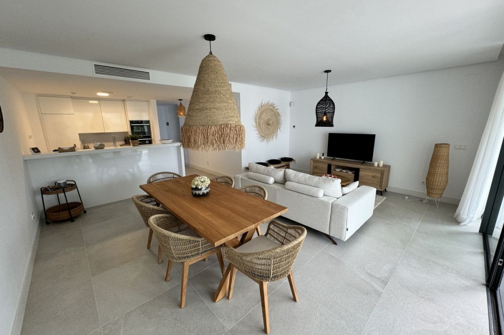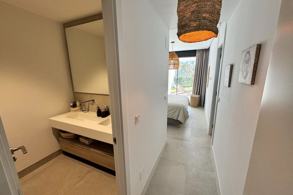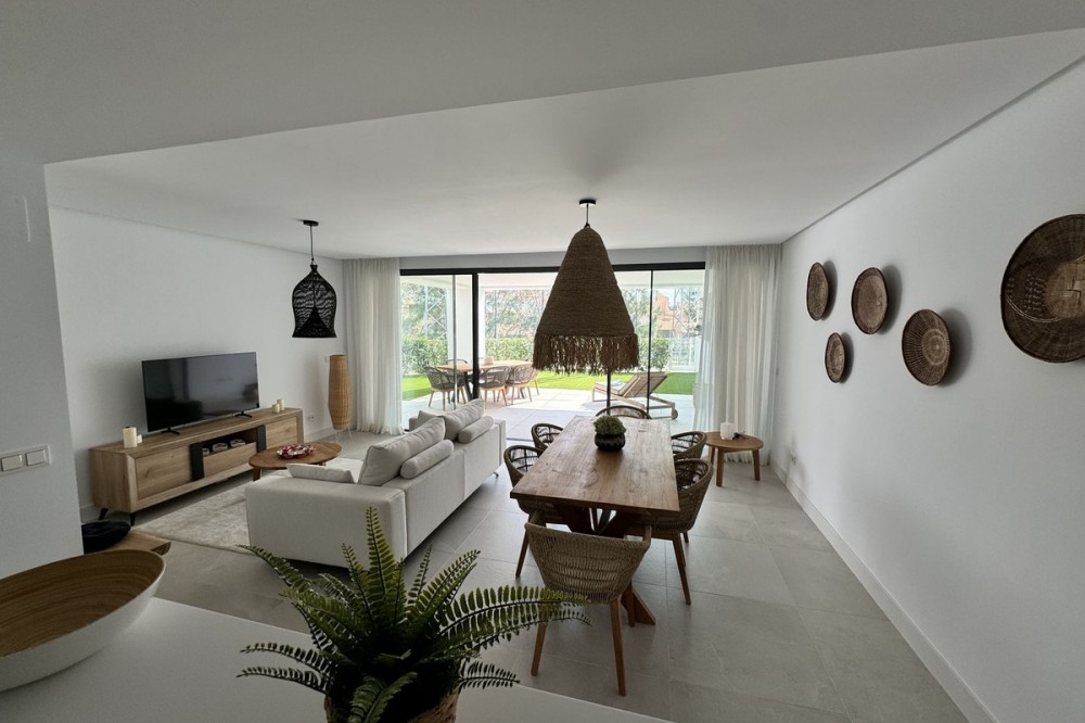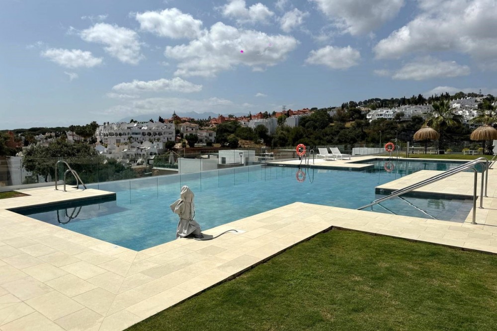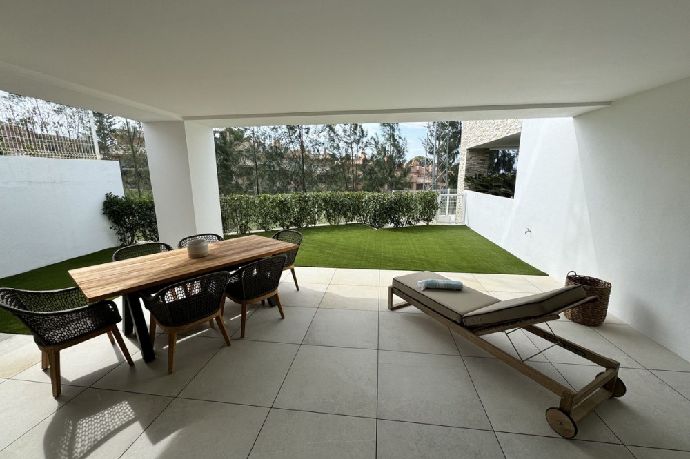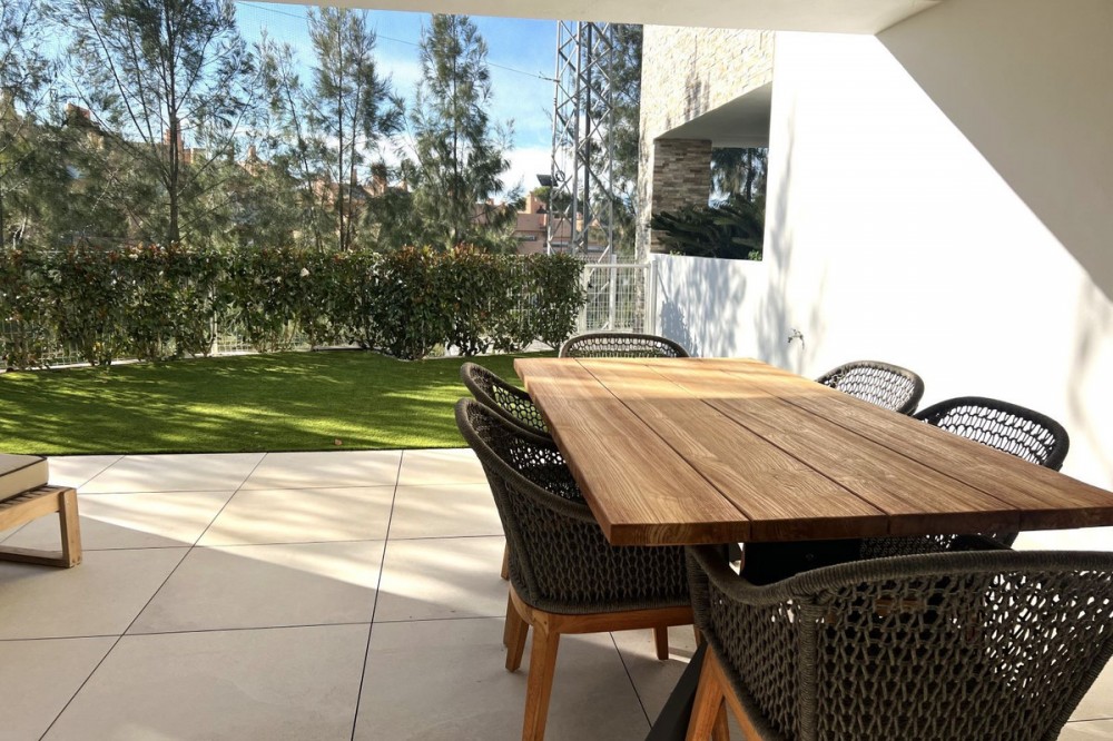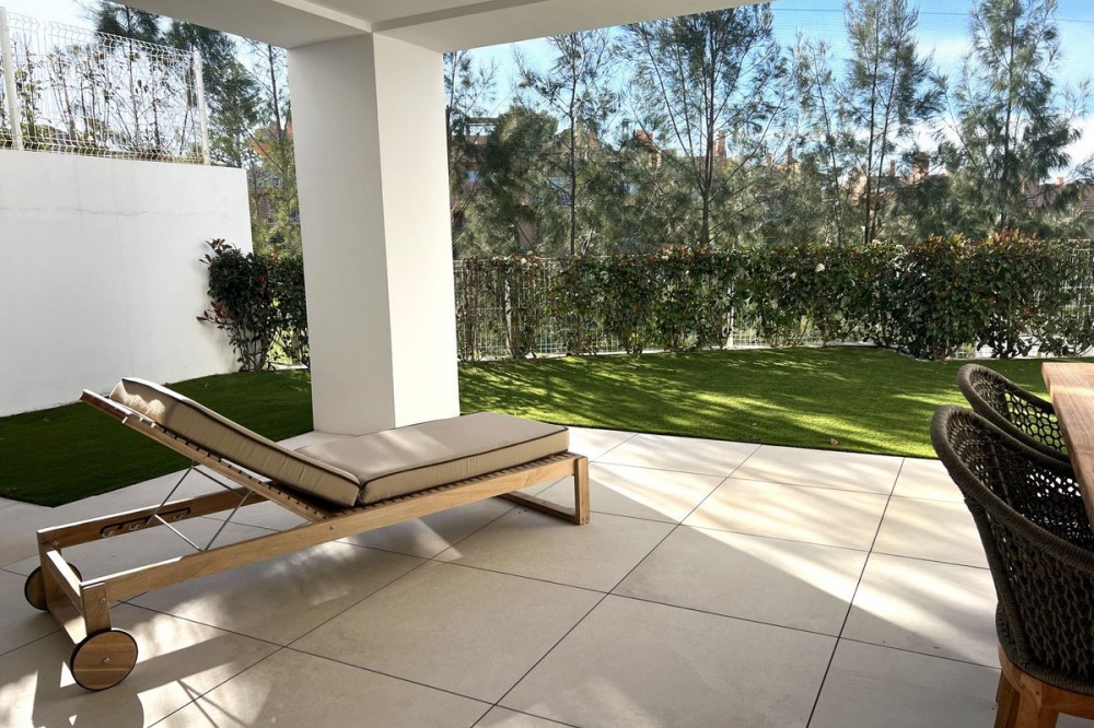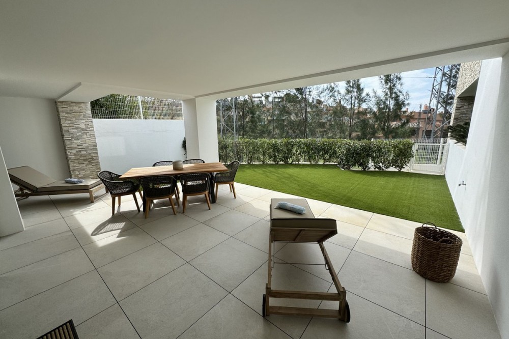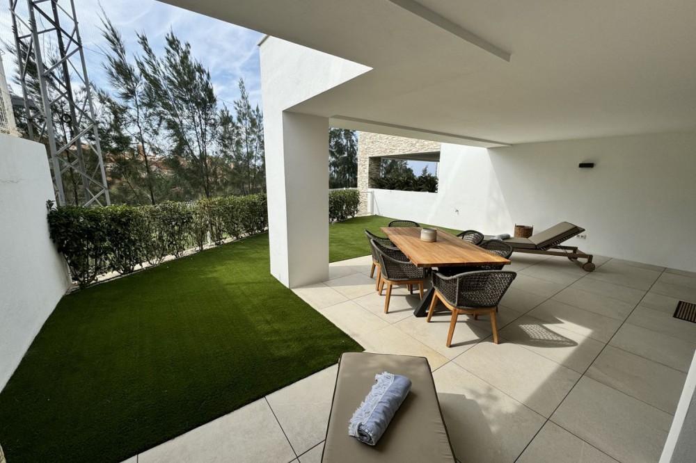 - Elevated ground floor apartment in modern Urbanisation Artola Homes. Incredibly decorated, modern and with the best orientation, south, very bright and with magnificent open views. Gated community, with security personnel 12hs a day. Includes very good amenities: Indoor heated swimming pool, outdoor swimming pool and a modern gym. Only 15 minutes walking distance to the famous dunes, beach and port of Cabopino in Marbella. Due to its great location it is also only 15 minutes drive from the centre of Marbella. -Large living area, including a terrace of 35mts. plus 35mts. of garden. -It is an elevated ground floor with large terrace and garden. It has lift. -100% fitted kitchen, with all NEFF appliances. It also includes washing machine and dryer. -Air conditioning hot/cold, via Aerothermia, which provides greater energy efficiency. Underfloor heating in bathrooms. -Home automation system and APP for switching lights on and off, management of electric blinds, and temperature control of the flat. -Includes 2 parking spaces, one underground and one communal. -It has also a big storage room. Don't miss the opportunity to see this fantastic property in one of the best areas of Marbella! Artola Alta Why choose the area? You have a winning combination: sea, golf, nature and comfort in a premium location. Perfect both for year-round living and exclusive holidays. Authentic ambience without the urbanistic excesses of other areas of the Costa del Sol. Cabopino Marina Very close to Artola Alta, with approximately 169 moorings and a pleasant area with bars, restaurants and nautical activities. It offers a quiet and pleasant atmosphere, ideal both during the day and at sunset. Cabopino Golf 18-hole golf club designed by Juan Ligués Creus, combining par-3, par-4 and par-5 with lakes, curious pine trees and spectacular views of the Mediterranean Sea. The third hole is particularly celebrated: a par-4 from an elevated tee at a height of 80 m, protected by bunkers, with breathtaking views. Located in Artola Alta, just a few minutes' walk from the beach and the port, it offers a well-kept environment and a welcoming clubhouse. Ground Floor Apartment, Cabopino, Costa del Sol. 3 Bedrooms, 3 Bathrooms, Built 132 m², Terrace 172 m². Setting : Close To Golf, Close To Port, Close To Sea, Close To Schools, Urbanisation. Orientation : South. Condition : Excellent. Pool : Communal. Climate Control : Air Conditioning. Views : Sea, Golf. Features : Covered Terrace, Lift, Fitted Wardrobes, Private Terrace, Gym, Storage Room, Ensuite Bathroom, Domotics. Furniture : Optional. Kitchen : Fully Fitted. Garden : Private. Security : Gated Complex, Electric Blinds, Alarm System. Parking : Underground, Garage, Covered. Utilities : Electricity, Drinkable Water. Category : Golf, Holiday Homes, Investment, Luxury, Resale.