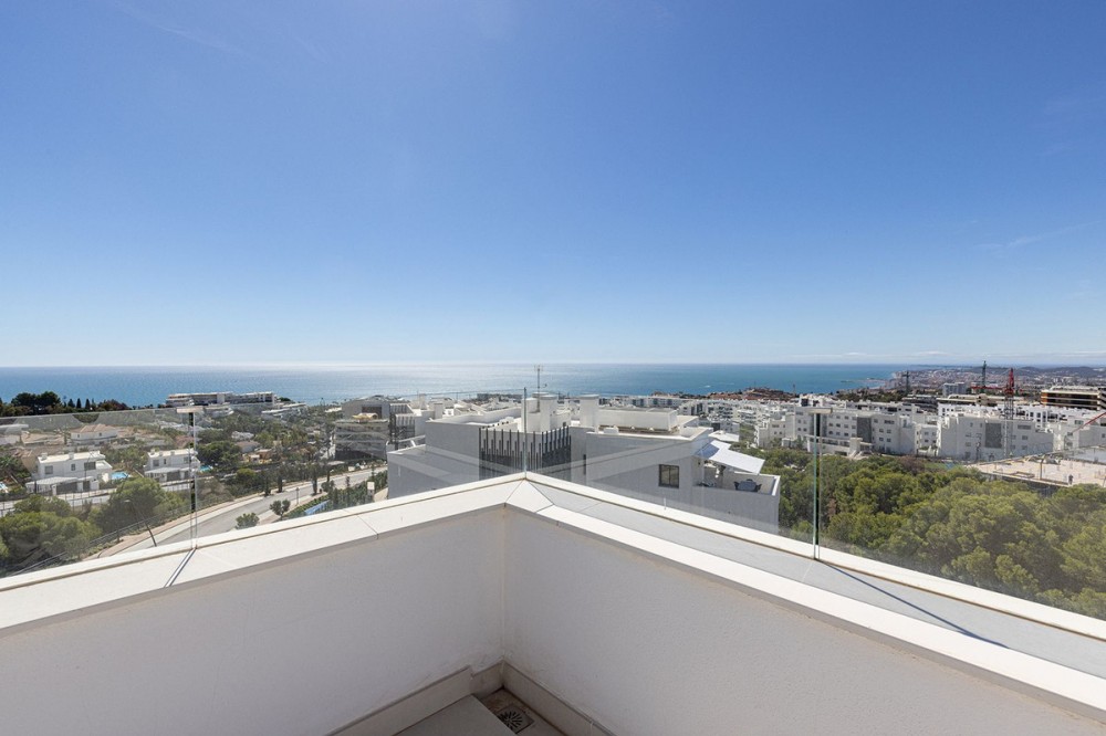 - This magnificent penthouse in El Higuerón offers exclusive design and breathtaking views in a prestigious gated community. The property features three bedrooms, two bathrooms (one ensuite), and a spacious open-plan living room and kitchen. The living room opens to a large sunny terrace which is partially covered that takes you to a rooftop 50.43m2 solarium with panoramic views to the bay with plenty of space to enjoy the best weather in Europe. Surrounded by top-tier amenities, leisure options, and gourmet dining, its prime location enhances the luxury living experience. Residents enjoy first-class facilities, including two infinity pools, a cutting-edge gym, spa, paddle tennis courts, and a private putting green. This exclusive apartment in Higueron west 217 in Fuengirola, is 1.6km from Torreblanca Beach. The property has 2 car parking spaces along with a storage room.