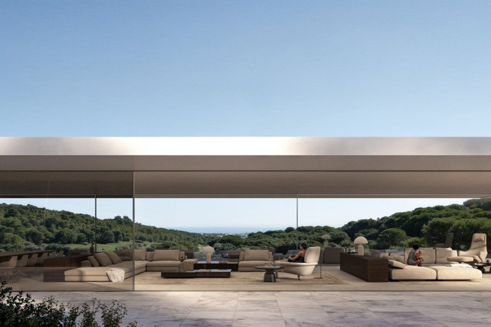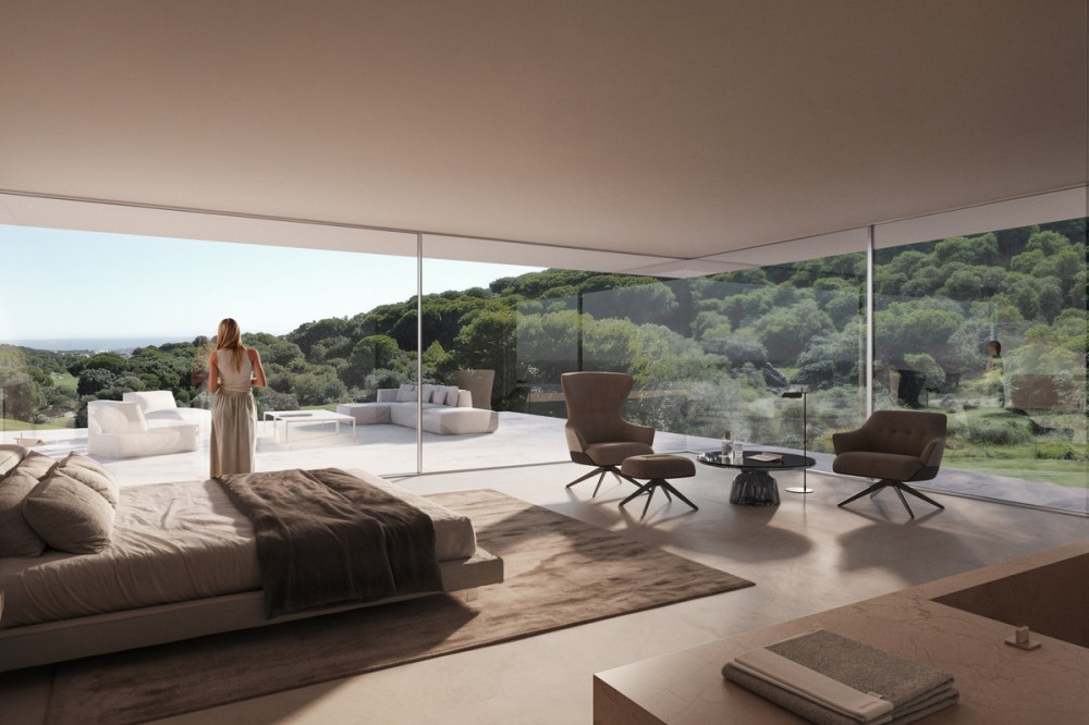 - This exceptional luxury home in La Reserva de Sotogrande blends modern architecture with sustainability, offering unparalleled comfort in a first-line golf course location with views of both the greens and the Mediterranean Sea. Its modernist design features clean lines, expansive terraces, and a tiered structure that maximizes natural light and stunning vistas. The property spans 1,906 m² of built area on a 2,451 m² plot, with 1,047 m² dedicated to interior spaces. The first floor comprises a day area of 196 m², including a hall, living room, dining room, a preparation kitchen, and a show kitchen. It also features a covered terrace (144 m²) and uncovered outdoor spaces (141 m²). The night area on the ground floor (172 m²) includes the master bedroom and three additional bedrooms, all with en-suite bathrooms. This floor also provides a garage and more outdoor terraces (225 m²). The basement adds a social area, library, cinema, gym, and wellness zone with a sauna and heated indoor pool. The property features five luxurious bedrooms, including two master suites, and eight bathrooms. The outdoor amenities include a large infinity pool with a beach area and outdoor dining and living spaces perfect for entertaining. There is a private cinema, a dedicated library, and extensive outdoor terraces totaling over 850 m². The home also includes a spacious garage, car access, and multiple covered and uncovered terraces, offering the best of indoor-outdoor living. Sustainability is key, with a low-enthalpy geothermal system providing heating, cooling, and domestic hot water. The photovoltaic system generates renewable energy, and a battery storage system ensures energy efficiency. The property is self-sufficient, with geothermal and solar energy systems supporting the villa year-round. Additional features include underfloor heating, advanced air conditioning, and a fully customized elevator that integrates seamlessly into the home’s design. Built with first-class materials, the home is insulated with a SATE system for thermal efficiency and has mechanical ventilation with heat recovery. Plumbing and drainage systems are soundproofed and fire-resistant, guaranteeing the highest quality in comfort and safety. This stunning home epitomizes the ultimate in sustainable luxury, offering modern design, expansive living spaces, state-of-the-art technology, and eco-friendly features in a prestigious location.