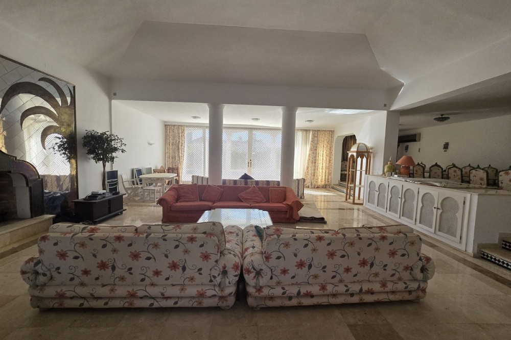 - Excellent opportunity - Reform project and villa situated in Marbella Hill Club - 4.000m2 plot Situated in one of Marbellas most prestigious locations and only minutes to the Golden Mile and Puerto Banus, this villa has a constructed size of 800m2. The house is distributed over one level and has a guest apartment the lower east side of the property. Internally the house consists of 6 bedrooms, 4 bathrooms a large living, dining area, two kitchens, guest apartment and a large south facing swimming pool and garden. The property is situated on a plot of 4.000m2 and is in need of a complete reform or potentially you could demolish the structure and construct and brand new villa over 2 levels creating stunning views to the La Concha and the sea. The property and plot provide so much opportunity for either a developer or end user to be able to complete a wonderfully modern property. Ideally located within 5 minutes of 3 international schools, Marbella and Puerto Banus this property is an ideal location to create your own dream home.