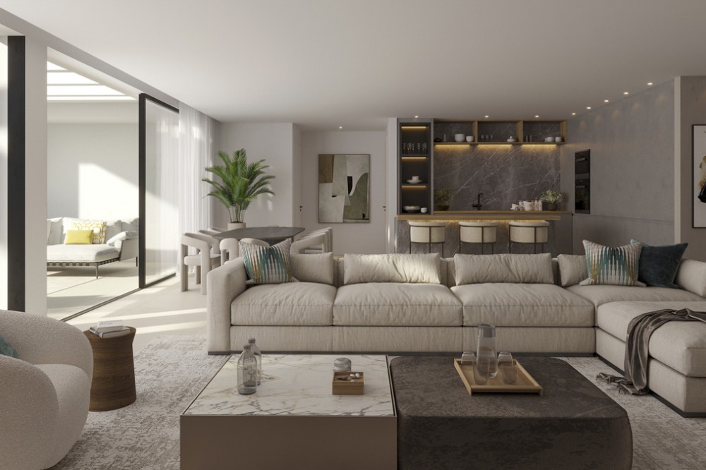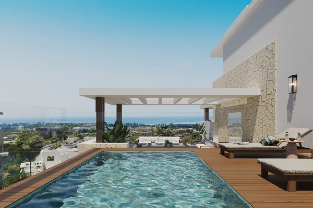 - New Development: Prices from €725,000 to €2,150,000. [Bedrooms: 2 - 4] [Bathrooms: 2 - 4] [Built size: 118m2 - 222m2]. Luxury gated development of 72 apartments and penthouses, designed by the renowned architects Villarroel. Established over 50 years, the architectural concept is seamless integration of architecture with nature. This exclusive complex of 2, 3 and 4 bedroom luxury apartments is located within in an area of outstanding natural beauty, where each property benefits from spectacular sea and mountain views. Each apartment has a spacious open-plan layout and a large terrace for you to enjoy al-fresco living. You will also enjoy 2 communal outdoor pools, indoor pool, fully equipped gymnasium, sauna, hammam, golf practice area, beautifully landscaped gardens and 24 hour security.