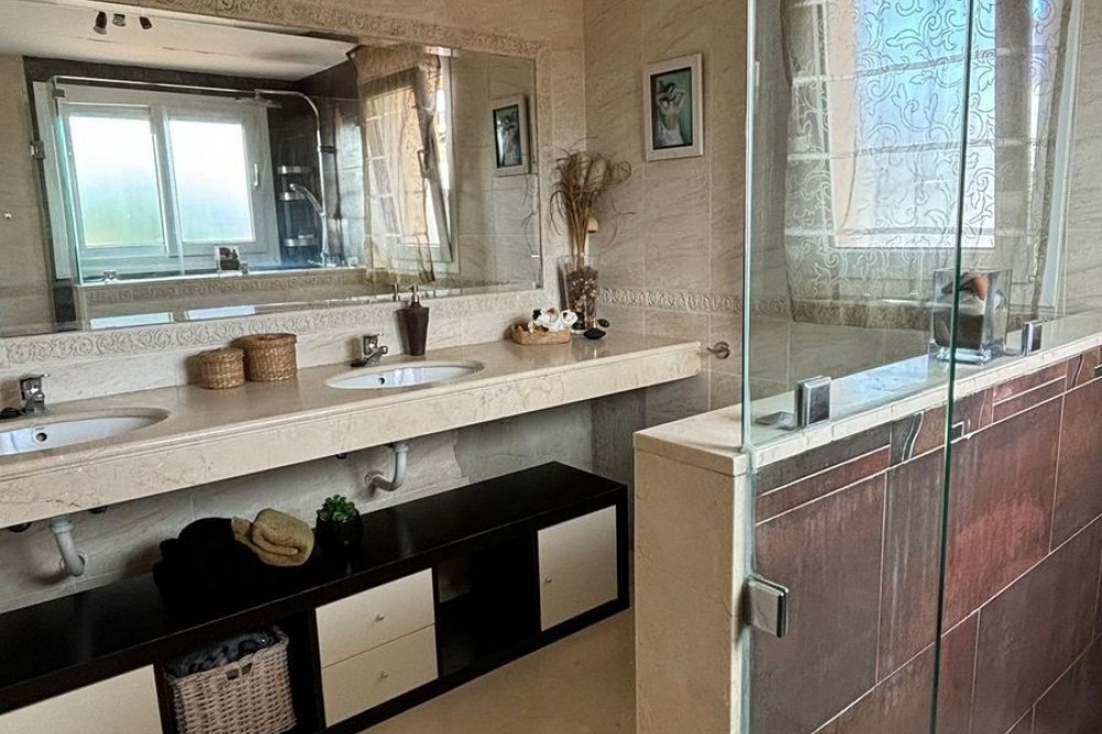 - Fabulous semi-detached house located in Riviera del sol, Mijas Costa, next to the toll that connects with Malaga 20 minutes and Marbella center 10 minutes. Ideal for families due to its comfort, beautiful common areas, two fantastic swimming pools. The property is in perfect condition, it consists of 3 bedrooms and two full bathrooms, one en suite, plus a guest toilet. Large private garden with maintenance included in the community as well as water. The property has excellent qualities. The house has several extra improvements. Security cameras throughout the urbanization. Bus stop 3 minutes walk, school bus stops 100 meters away. Ideal to enjoy an excellent vacation or live, beaches, restaurants, shopping center just 5 minutes away...