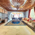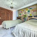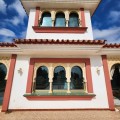 - Stunning Villa in Arabish-Andalusian Palace Style in Cala de Mijas Just 300 meters from the sea, this magnificent villa blends Andalusian Nazarí-modern design, combining luxury and tradition. Its privileged south-facing orientation ensures sunlight throughout the day, illuminating the garden and pool area. The property is accessed through a grand gate and a driveway. The villa is distributed over 3 floors plus a loft, featuring unique architectural details. Upon arrival, a small staircase leads to the pool and the main porch, offering stunning sea views. The entrance is through an impressive double door, hand-carved in mahogany, leading to a majestic 12-meter-high hall with a central patio and a marble fountain, all bathed in natural light coming through the central tower. To the left, a sliding double door opens to a large, bright double living room with sea views and windows overlooking the side garden. The high ceiling is lined with hand-carved mahogany wood, adding an artisanal touch to the space. This floor also includes a bright bedroom with garden views and a marble bathroom, perfectly equipped. On the right side of the hall, another living room with sea views connects to a spacious dining room, which leads to a modern kitchen equipped with high-end appliances and direct access to the rear garden. The upper floor offers three spacious bedrooms, two of them with access to a large terrace with panoramic sea views. The master bedroom features an en-suite bathroom with a jacuzzi and large windows providing abundant natural light. A second full bathroom also includes a jacuzzi and side windows. All carpentry is handcrafted from mahogany, and the windows are double-glazed. The lower floor offers flexible space with four additional bedrooms, perfect for conversion into a cinema room, games room, or even an independent apartment. It also includes a full bathroom and a garage with space for four cars. Located in the exclusive coastal urbanization of **Torrenueva**, this property is in the heart of Mijas' coastal area, just a short distance from the beaches and surrounded by lush forests. This enclave is known for its tranquility, international community, and excellent access to the AP7 motorway and A7 highway, allowing quick access to Málaga airport in 25 minutes, and Marbella or Puerto Banús in less than 15 minutes. Additionally, the nearby Cabopino area offers a charming marina just 10 minutes away. Torrenueva stands out for its excellent range of services, including restaurants, shops, tennis and golf clubs, as well as outdoor activities such as hiking, fishing, and diving. A unique property in an exceptional location, perfect for those seeking luxury, privacy, and proximity to the sea.