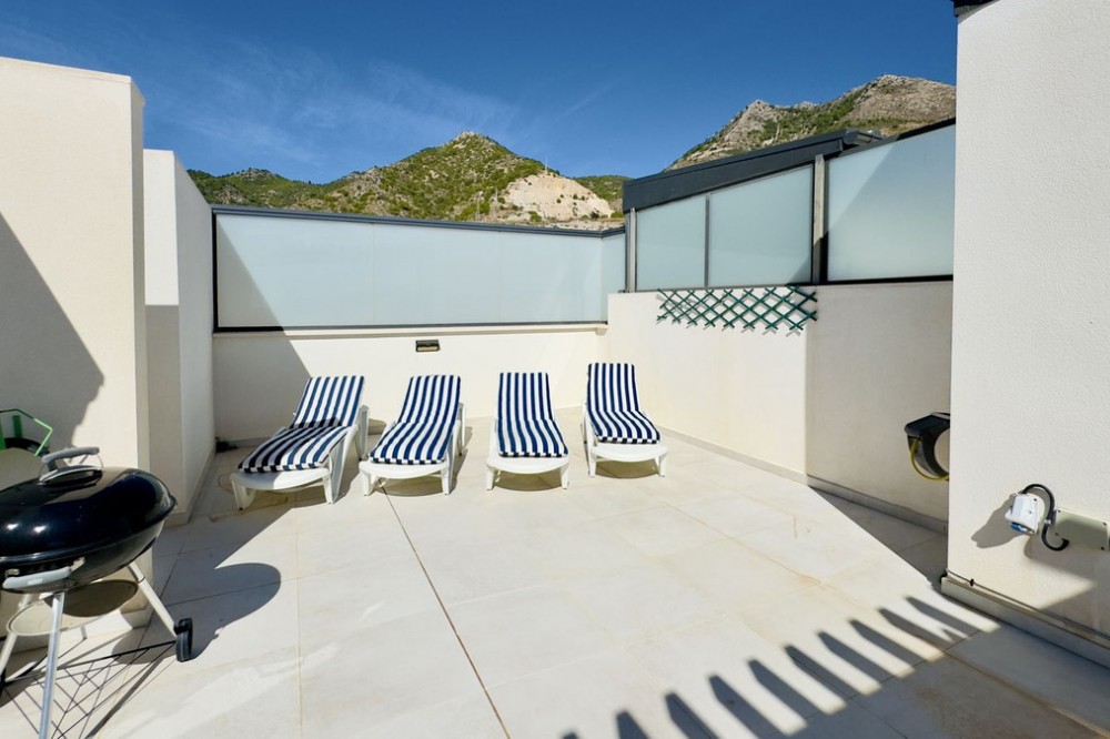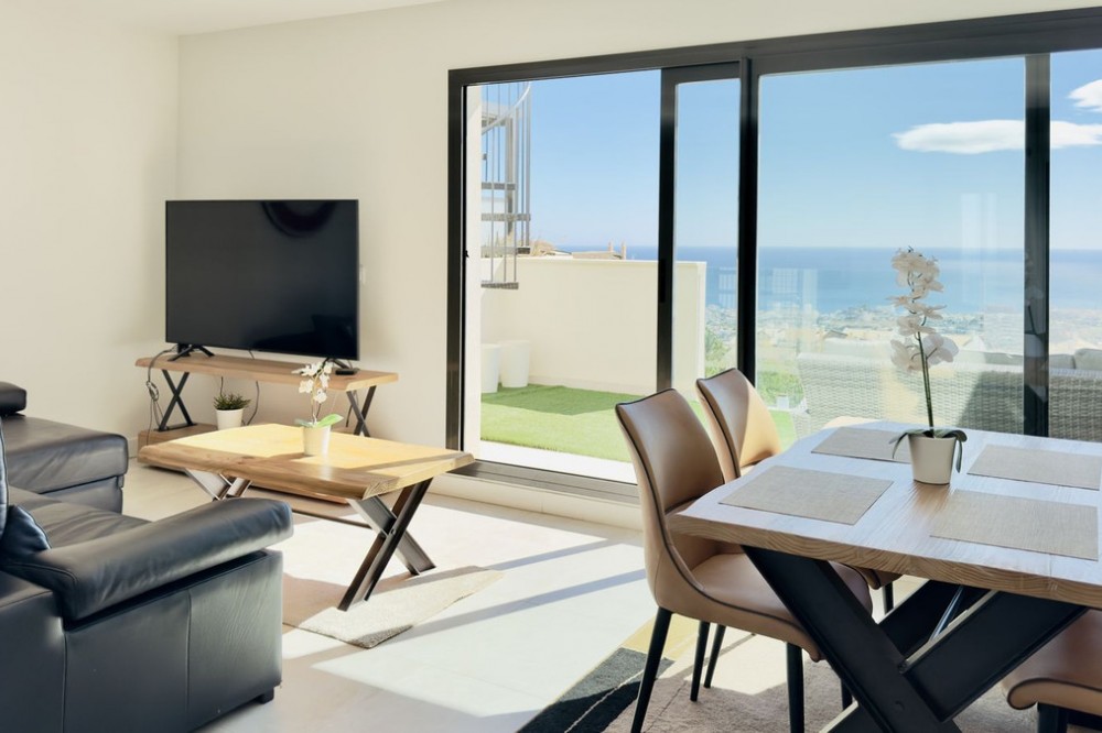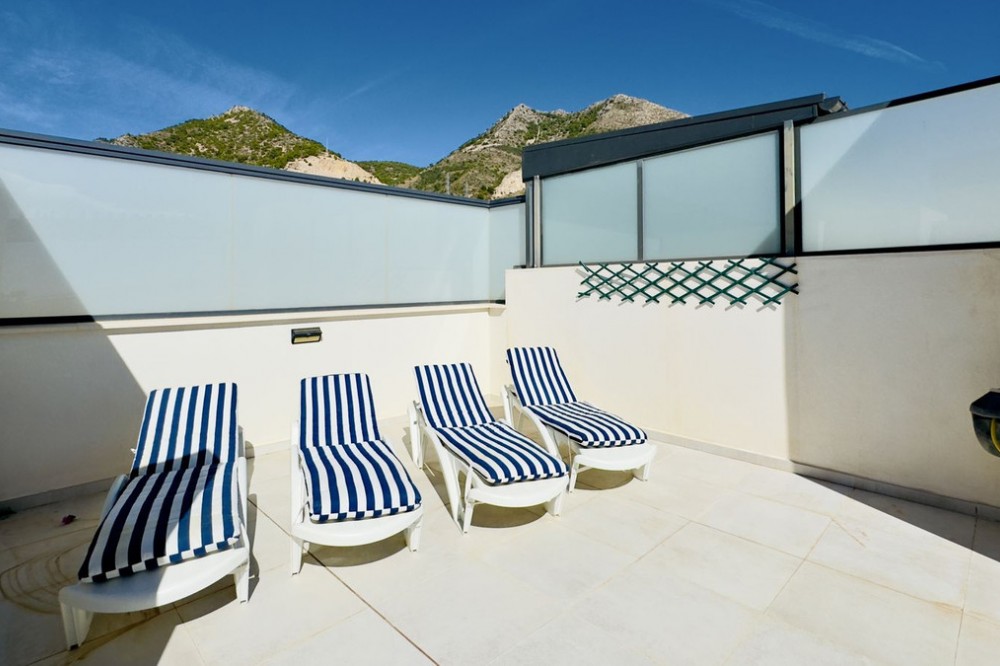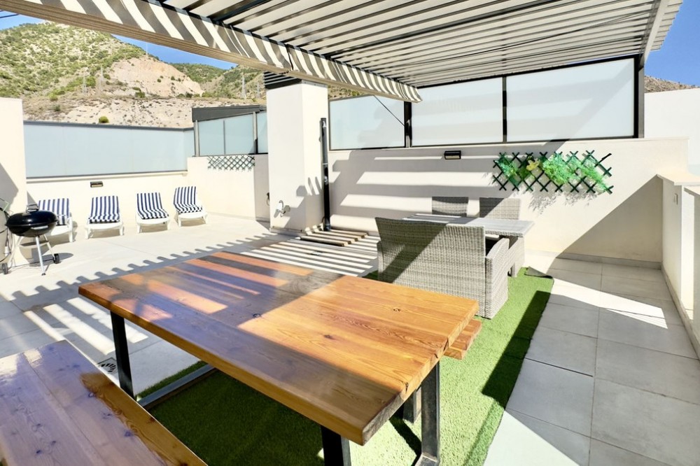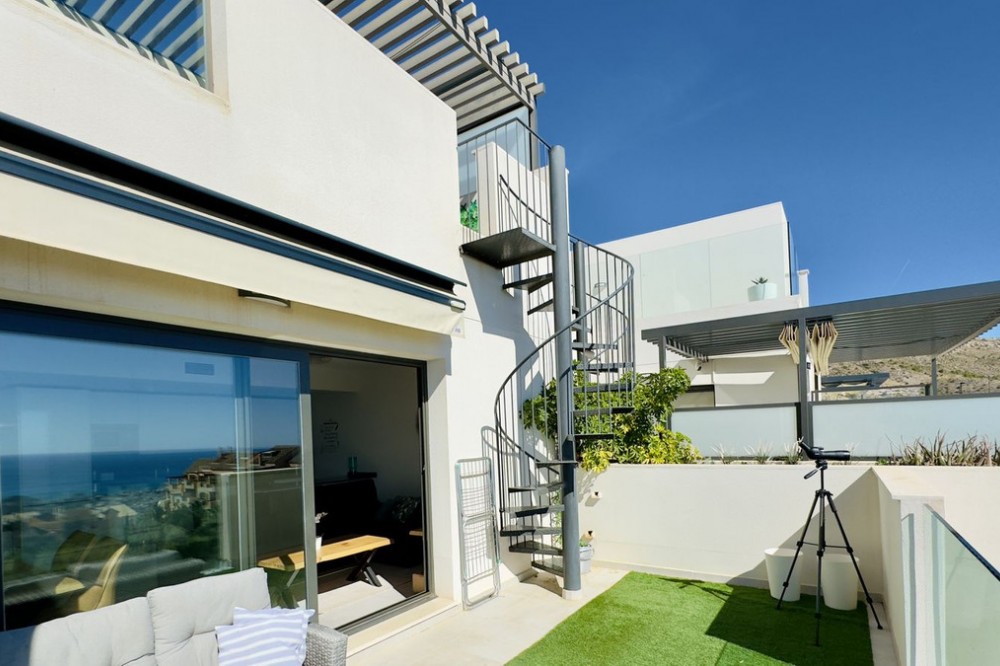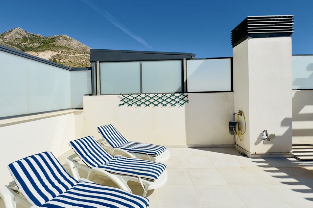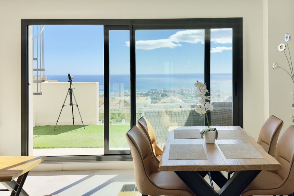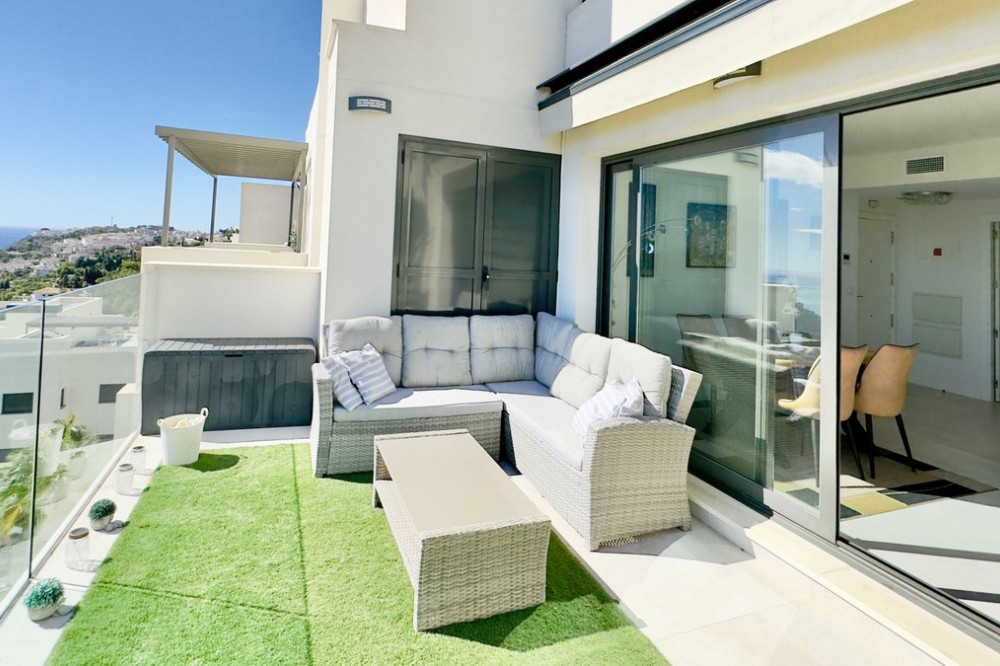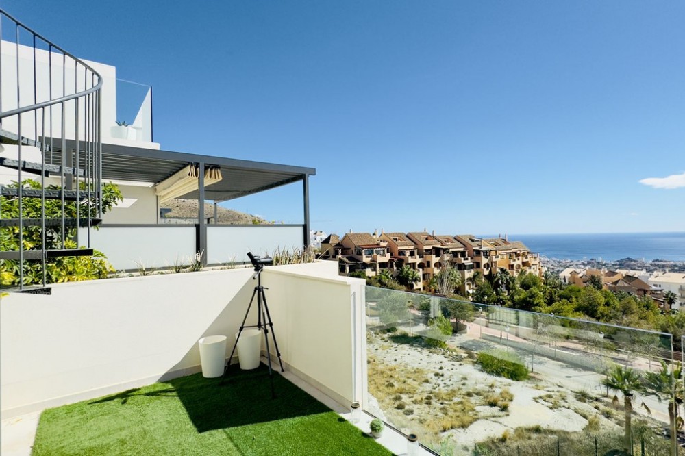 - Luxurious 2 Bed Penthouse with Amazing Sea Views in Benalmadena This beautiful 2-bedroom, 2-bathroom penthouse in Benalmadena offers high-quality finishes throughout, creating a luxurious atmosphere. The smart, modern floor plan optimizes space for comfortable living. The outdoor areas are a standout feature, with a south facing lower terrace that enjoys a lot of sun, and a large rooftop terrace with amazing sea views and sunshine all day. A private sauna on the rooftop adds a touch of indulgence. The property also includes two underground parking spaces and a storage unit, with direct lift access from the parking area to the apartment. This penthouse perfectly blends luxury, stunning sea views, and modern convenience. This property has a tourist license.