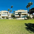 - Reduced Frontline beach apartment for sale in Elviria, Marbella. Rare opportunity to acquire a frontline beach property in the very exclusive area of Elviria located 15m drive from Marbella. This 2 bedroom 2 bathroom ground floor apartment is totally renovated modern style and is sold fully furnished. The contemporary open plan kitchen opens to the living room which leads to a covered terrace, equipped with glass curtains which can be opened when needed. The property is very bright and is part of a small very exclusive complexe of 14 apartments only, where all have stunning sea views. It is equipped with double glazing windows and electric blinds, Air conditioning Hot and Cold. The apartment has a private garden included in the title deeds and a private covered parking space. The community garden of 2400m has direct access to the beach. The size of the plot is exceptional for only 14 apartments. The beautifully designed pool, and gardens are all very well maintained. You are allowed to rent short term in this complexe, making the property a great little earner, perfect for an investor. The residence is located walking distance to famous beach clubs such as the Marriott, Nicky beach and the five stars Don Carlos Hotel. You can reach in a few minutes walk the several commercial centers of the Elviria area. Elviria is an upmarket area, very popular with Golf lovers for its reknowned Santa Maria Golf course, surrounded by green wooded protected forests. For those who dream of lounging in their own garden with the sea only a few meters away, this is the Dream! Don't miss it, as it is a rare find.