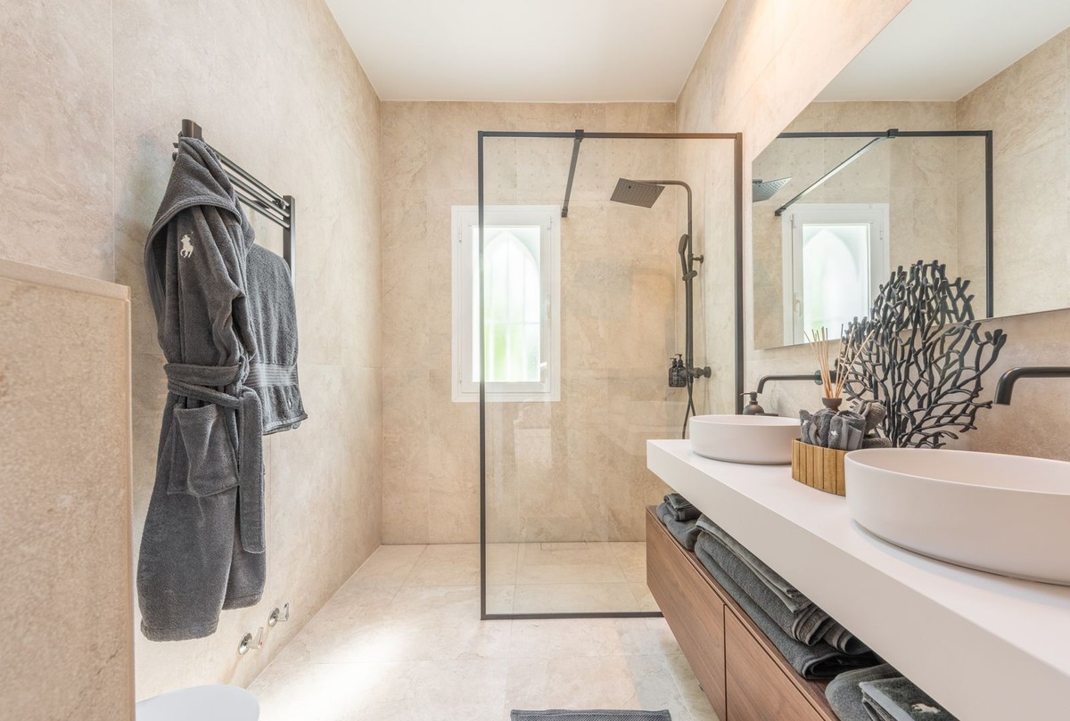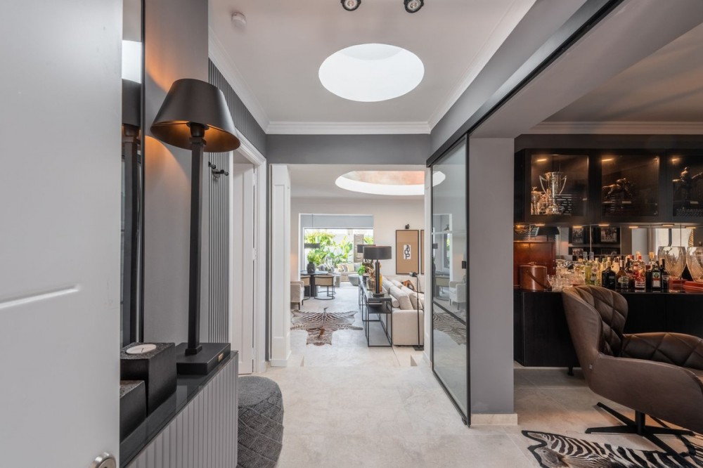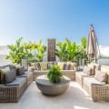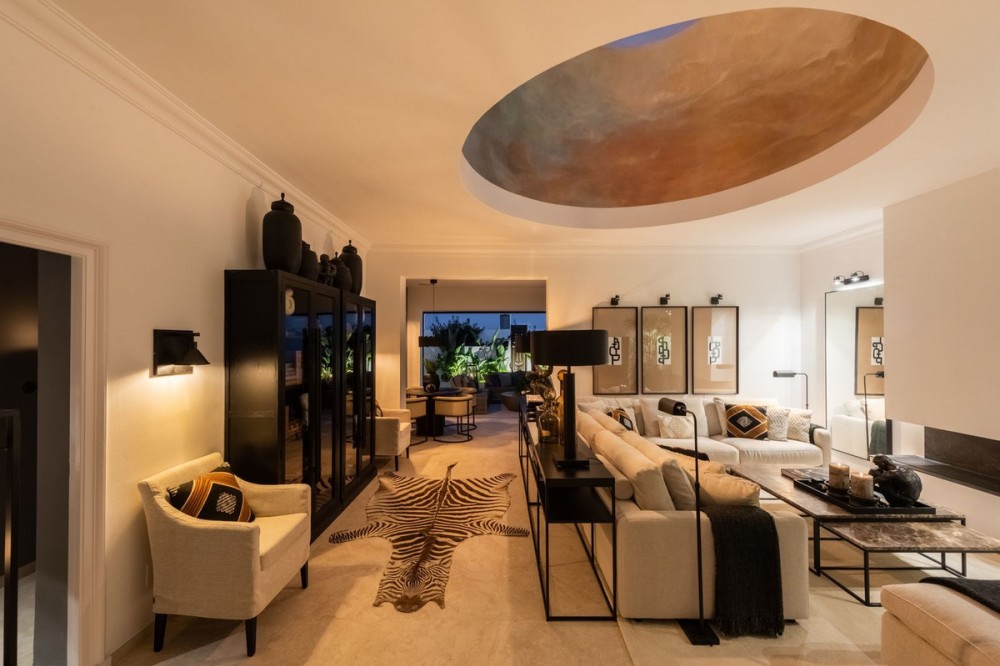 - Luxury beach bungalow in Oasis Club, this emblematic beachfront community on the Golden Mile of Marbella. This house has all the living accomodation on the ground level together with a large private terrace with direct access from the living room plus another terrace upstairs with wonderful sea views. Total built area is 189 sq.m. The house has just been completely refurbished using only the best quality materials resulting in a very stylish and elegant finish. A mediterranean exterior with a scandinavian feel in the interior! It is the perfect residence for someone who demands quality living in an A1 location. This beach front bungalow style townhouse is literally a few steps from the sea, located in the Oasis Club urbanization. A residential area on the Golden Mile that has a privileged location on the seafront and has a great beach club within the community. This complex is very close to all the services and leisure areas of the Golden Mile and has direct private access on to the beach and the promenade from where we can take a pleasant walk until we reach Puerto Banús to one side and Marbella towards the other side passing by the Puente Romano and Marbella Club Grand Luxury Hotels and their respective well-known restaurants.