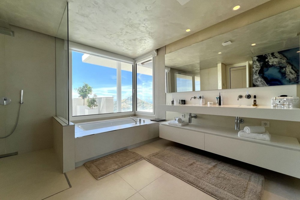 - Introducing a magnificent 3 bedroom Penthouse nestled within the luxury development Palo Alto in Ojen, Marbella with uninterrupted 180 degree views of the Mediterranean Sea. Set upon a exclusive plot of luxury apartments and soon to be villas Palo Alto features exclusive landscaping, magnificent sea views, horse stables, club house with gym, lounge, pool and spa and 24 hour gated security offering the upmost privacy for the discerning client. The Penthouse built in 2020 features 3 bedrooms, 5 bathrooms, an open plan lounge / dining room with top of the range kitchen and appliances. A private elevator leading directly to the apartment and expensive terraces and solarium giving uninterrupted 180 degree sea views perfect for alfresco dining and gatherings. In addition the penthouse comes with 2 underground secure parking spaces.