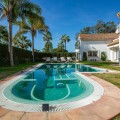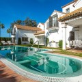- This stunning southwest-facing, two-story villa with a distinctive tower room is situated on an elevated corner plot in Sotogrande’s prestigious B Zone. Offering exceptional privacy, abundant natural light, and captivating views of the Sierra Bermeja mountains, this home is designed for luxurious living. The villa features a grand double-height entrance leading into a spacious living room with a large, inviting fireplace. With five en-suite bedrooms and an additional maid’s quarter, each bedroom is fitted with premium wood wardrobes, while the master suite includes its own cozy fireplace. The kitchen provides an opportunity for customization, allowing you to renovate to your personal style. A versatile sunroom connects to the outdoor area, where you’ll find a deck-level pool and a pool house with a shower. Additional highlights include: - Basement with a sauna and space for a gym or home cinema - Elevator access from the basement to the second floor - Three-car garage and additional carport - Underfloor heating and air conditioning throughout - Proximity to schools, shops, and renowned golf courses This villa’s prime corner plot offers not only unparalleled light and privacy but also abundant potential for tailored updates to make it uniquely yours.