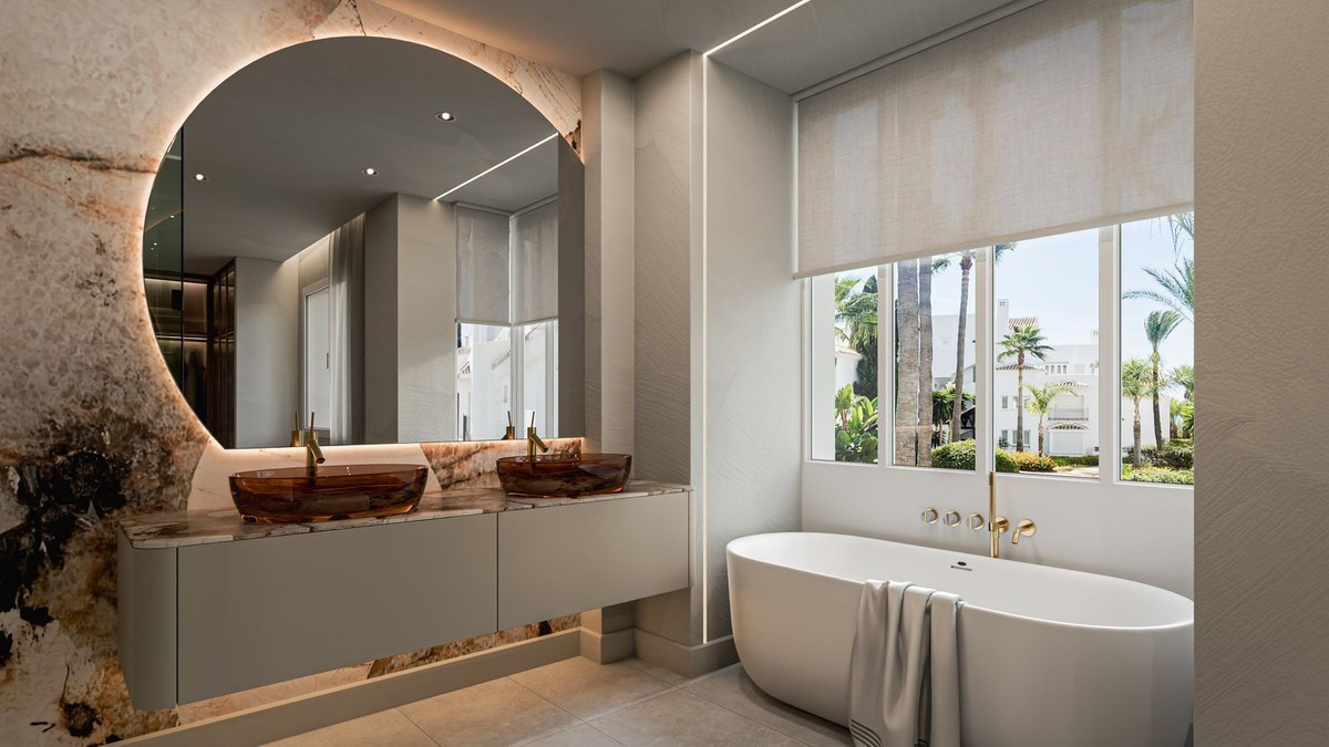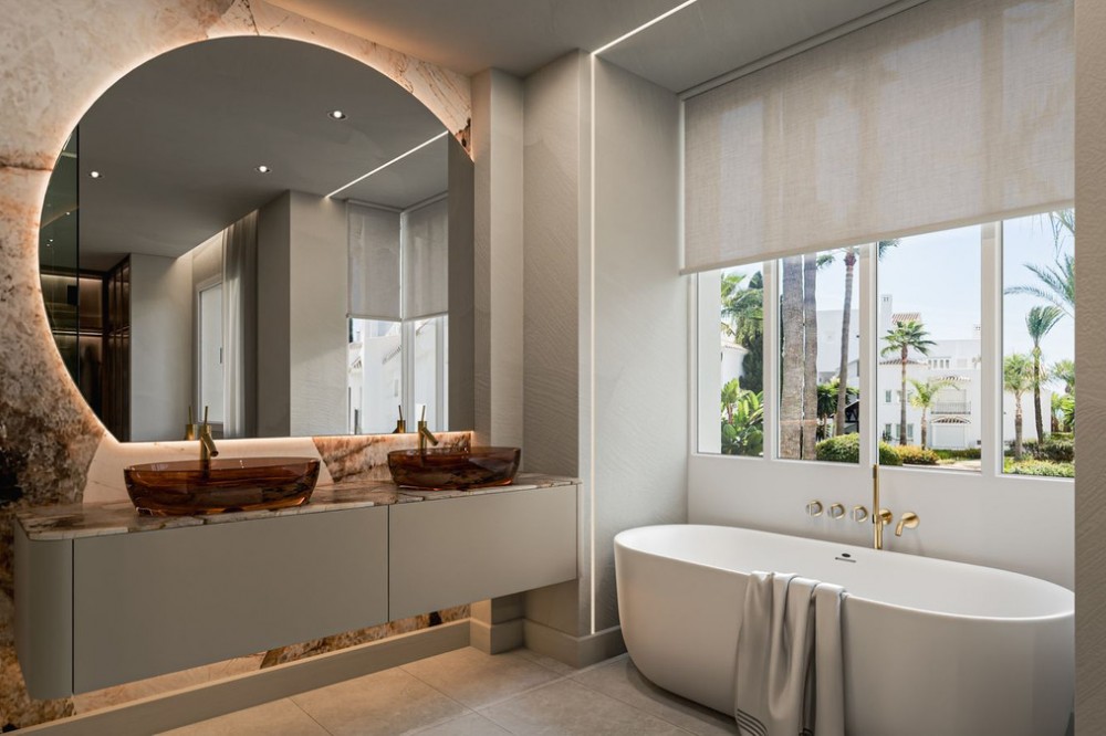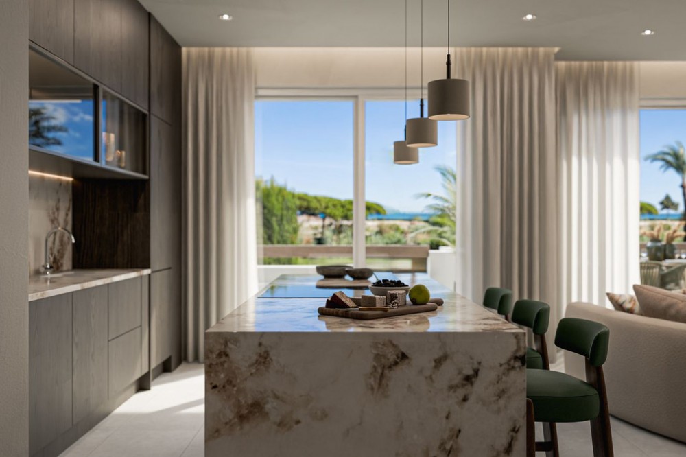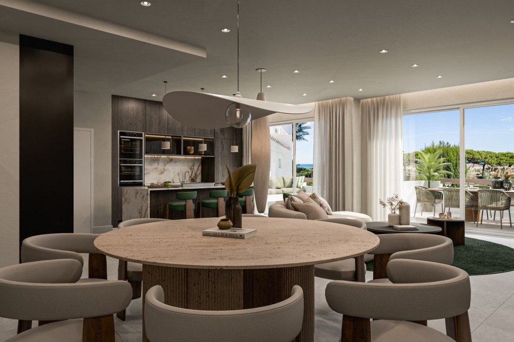 - This luxurious first-floor apartment has undergone a high-quality renovation and is ready for immediate occupation. Spacious and ultra-modern, the apartment is situated within a sought-after beachfront complex in Reserva de Los Monteros, known for its prime location, 24-hour security, lush tropical gardens, and two communal swimming pools. Facing west and offering 150m² of living space, the apartment features an expansive living and dining area, an open-plan kitchen, and a TV lounge, all leading to a generous 40m² terrace. Each of the three bedrooms is roomy, with the master suite boasting an en-suite bathroom, and all bedrooms have large windows with direct outdoor access. Additional highlights include a second bathroom, guest toilet, laundry area, hot and cold air-conditioning, underfloor heating in the bathrooms, a parking space, and a storage room. This apartment provides an exceptional setting for year-round beachside living in a quiet, secure environment ideal for families. Nearby, enjoy various beach bars and clubs such as then highly regarded “Trocadero Arena” or walk along the promenade to Marbella's centre. Several golf courses and Marbella’s town centre are only a short drive away.
