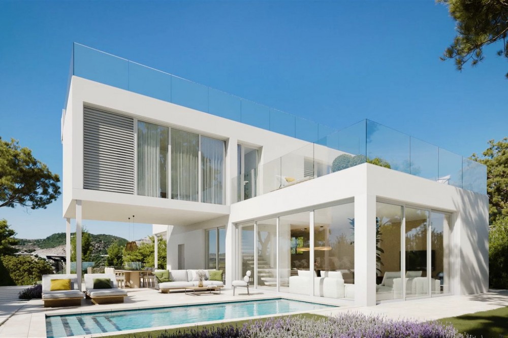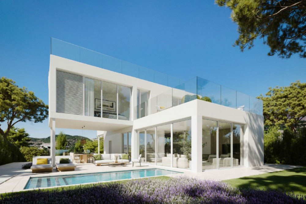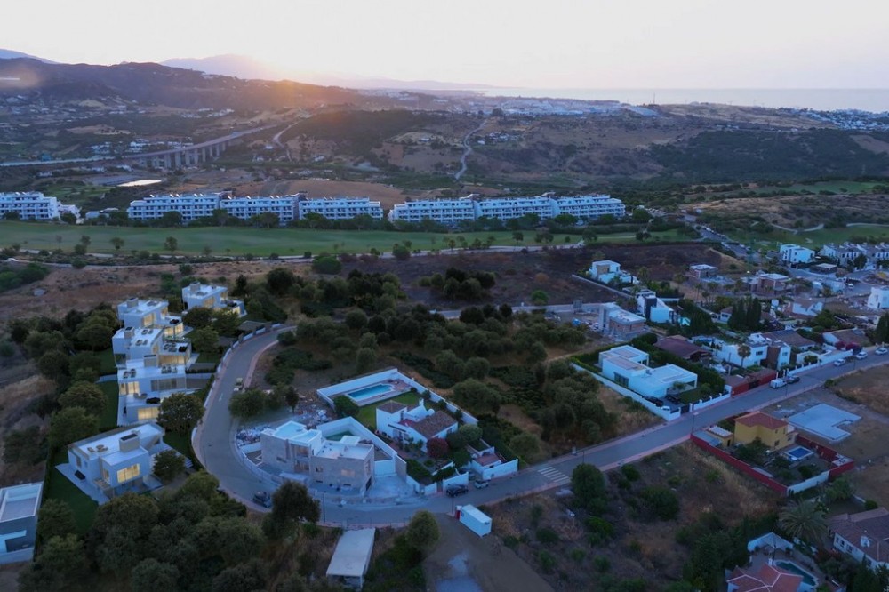 - This project has already obtained a license, and construction is set to begin immediately. This exclusive luxury villa, located in the prestigious enclave of Valle Romano in Estepona, embodies the essence of modern design and sophistication in a privileged natural setting. With clean, elegant architectural lines, the villa blends seamlessly into the Mediterranean landscape, maximizing natural light and offering panoramic views of the sea and nearby golf courses. The interior design focuses on comfort and functionality, featuring spacious open areas and high-end finishes. The living room, surrounded by large windows, connects to a fully equipped gourmet kitchen—perfect for those who enjoy the culinary arts in an elegant setting. The bedrooms, all with en-suite bathrooms, stand out for their privacy, brightness, and direct access to private terraces that invite relaxation. Outside, the villa boasts an impressive swimming pool and landscaped gardens that combine native flora with a minimalist design. Multiple lounge areas and an outdoor barbecue space make this the perfect place for entertainment and relaxation, offering an exclusive and serene ambiance. Designed for those seeking a luxurious lifestyle in a unique natural environment, this villa in Valle Romano, Estepona, strikes the perfect balance between contemporary design, comfort, and natural beauty.