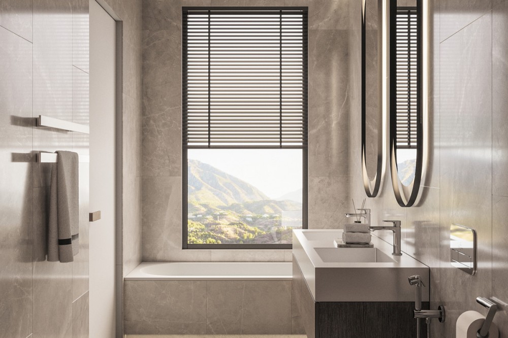 - New Development: Prices from €1,700,000 to €2,150,000. [Bedrooms: 4 - 6] [Bathrooms: 4 - 5] [Built size: 299m2 - 369m2]. This development is situated in a prime location nestled between the charming towns of Mijas, Benalmadena, and Fuengirola on the picturesque coastline of Spain. Majestic villas in the picturesque mountains offer a unique opportunity to savour the tranquil beauty from dusk to dawn, as the sun casts a golden glow over the coastal landscape.