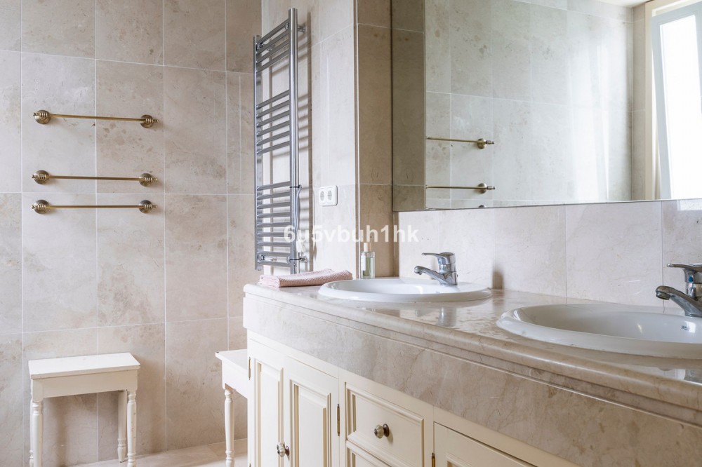 - Exquisite penthouse located in one of Marbella’s most prestigious and iconic residential areas. Set within the exclusive Los Monteros urbanization, this exceptional property offers an unparalleled lifestyle just a short walk from the beach. The community is home to the renowned 5-star Kimpton Los Monteros Hotel and the iconic La Cabane Dolce & Gabbana Beach Club, placing world-class amenities at your doorstep. This elegant penthouse enjoys a privileged position within the private community, only minutes from the shoreline. It features three generously proportioned bedrooms, two of which offer en-suite bathrooms. The spacious living area, enhanced by a fireplace, opens onto a magnificent terrace with panoramic sea views, ideal for both relaxation and entertaining. A refined dining area leads to a second terrace overlooking the immaculately landscaped gardens of the urbanization. The property also boasts a large independent fully fitted kitchen, with space for an informal dining area and a dedicated laundry area. Elegant marble flooring throughout the entire property adds a timeless sense of sophistication and continuity to the interior spaces. Residents of this exclusive community enjoy access to a large swimming pool, almost semi-Olympic in size, surrounded by beautifully maintained gardens, offering a serene and resort-like atmosphere. This penthouse is an ideal choice for those seeking to live in a luxurious setting without the commitment of a private villa, combining elegance, comfort, and convenience. It is perfectly suited as a permanent residence or as a refined second home to enjoy moments of relaxation throughout the year. The property offers breathtaking views, exceptional tranquility, and the highest standards of privacy and security, and includes a private parking space.