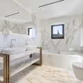 - Located in the prestigious Mijas Golf, this exquisite 3-story villa offers a perfect blend of elegance, innovation, and comfort. With 6 bedrooms, 4 bathrooms + WC, and 5 spacious terraces, it’s designed to impress: ✅ Private swimming pool (recently renovated with LED lights and new insulation) ✅ Lush garden with automated watering & fertilizing system ✅ Modern domotics app control: alarm, air-conditioning, heat pump, and more ✅ High-end kitchen + outdoor BBQ and kitchen for entertaining ✅ Elegant Portuguese marble floors & heated marble walls in the bathrooms ✅ Spacious game room, storage room, and garage for 2 cars ✅ Advanced water systems: softener, 1000m³ tank, and stable pressure This villa features only the highest quality Portuguese marble throughout, adding timeless sophistication to every corner. Nestled in the heart of Mijas Golf, this home offers luxury living in one of the most sought-after areas on the Costa del Sol. ????????