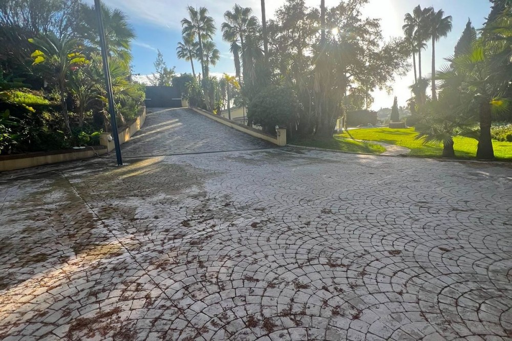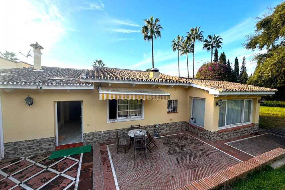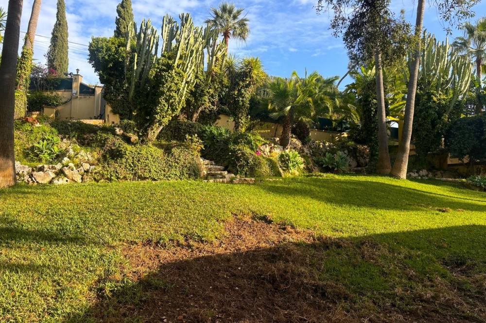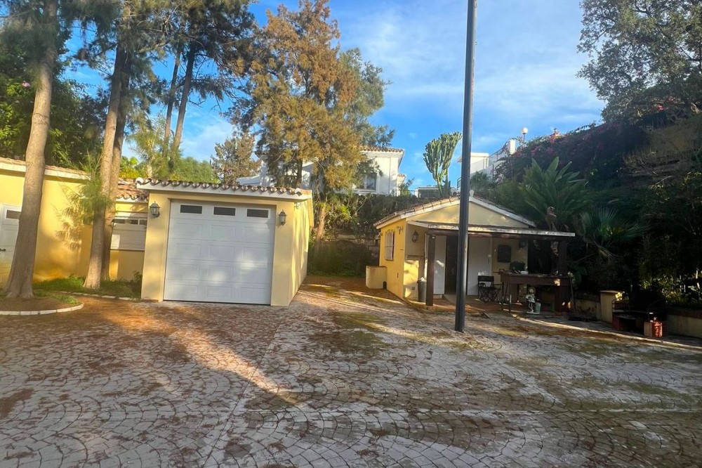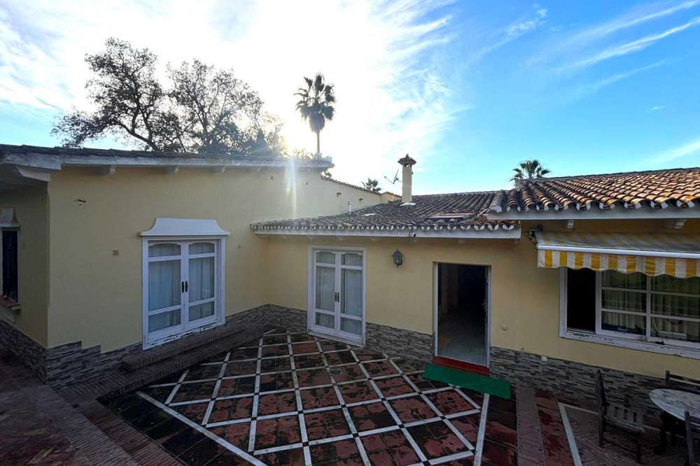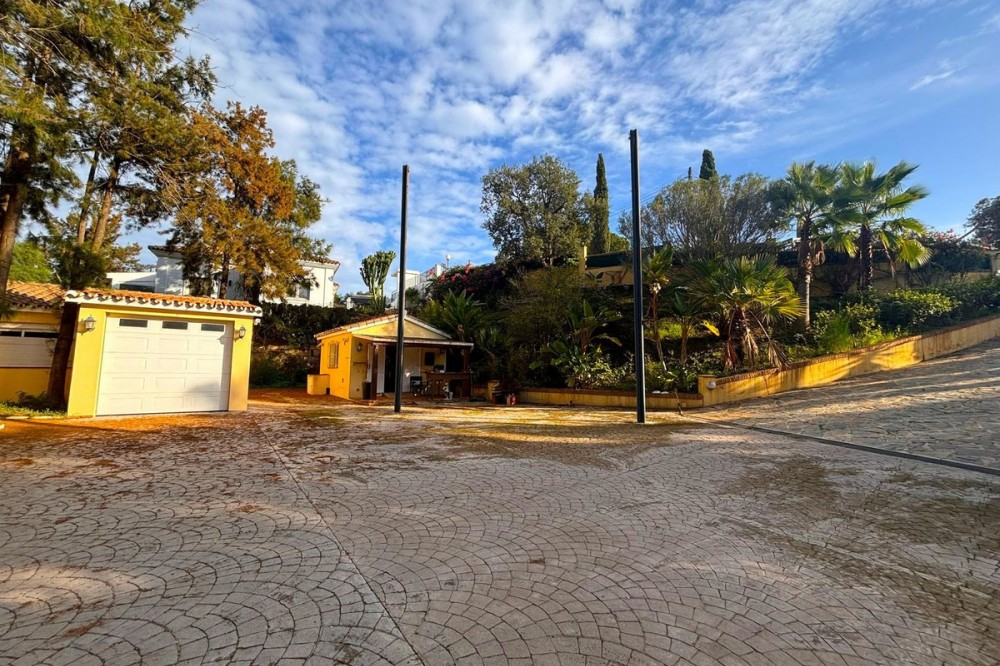 - This property offers a unique opportunity for investors or those looking to develop an exclusive residential project in the prestigious area of Elviria. With a plot of 5,200m², the land is mostly flat, with easy access and a slight southwest slope that provides open sea views. It is divided into two flat platforms: one to the south, where the pond is located, and another to the west, where the auxiliary service house is situated. The plot has the potential to be divided into 5 independent plots, allowing for the construction of 5 individual villas. With a minimum plot size of 1,000 m² in the area, this property offers an excellent opportunity to maximize return on investment. The property currently includes a single-storey house with 6 bedrooms, 5 bathrooms, and spacious porches, as well as a garden with a heated pool, its own well, a pond with lighting, and an irrigation system. It also features auxiliary buildings such as a garage (170 m²), a service house (40 m²), and a workshop (20 m²). Located in an exclusive area near white sandy beaches, golf courses, and the Elviria Shopping Center. With high-end services, international schools, restaurants, 24/7 security, and easy access to Marbella and 25 minutes to Málaga Airport, this property combines a privileged location with great investment potential. Elviria is the perfect place to live or invest.