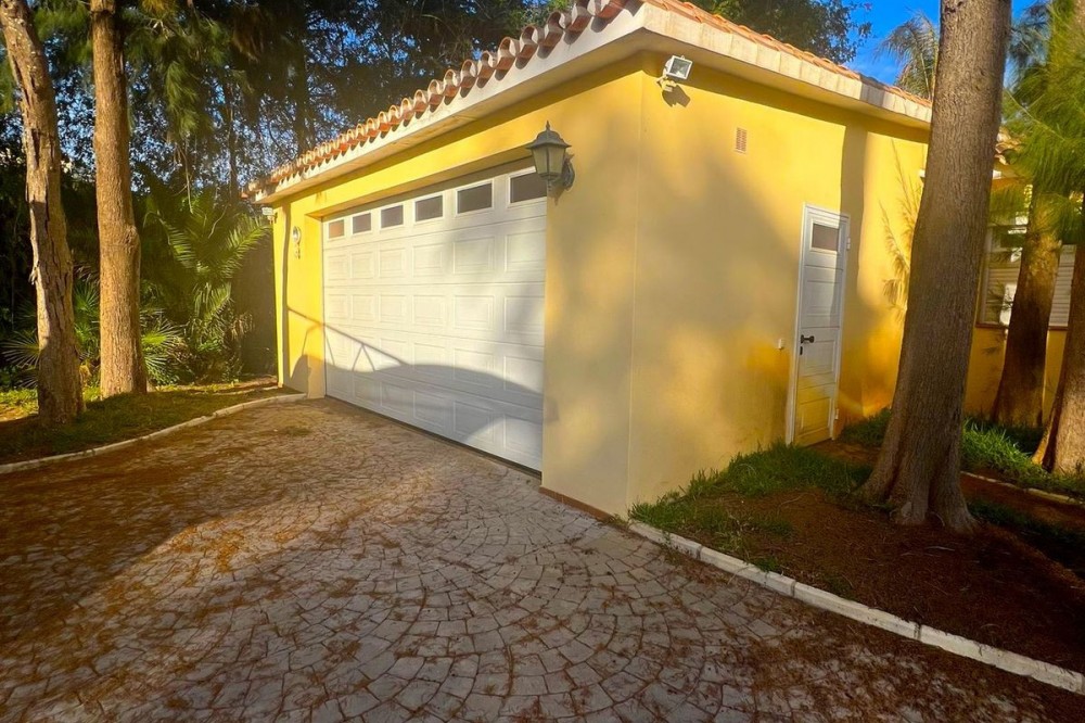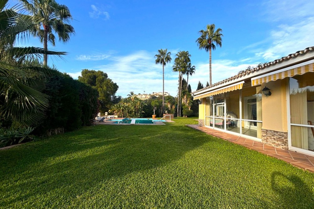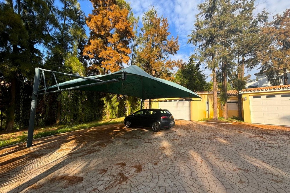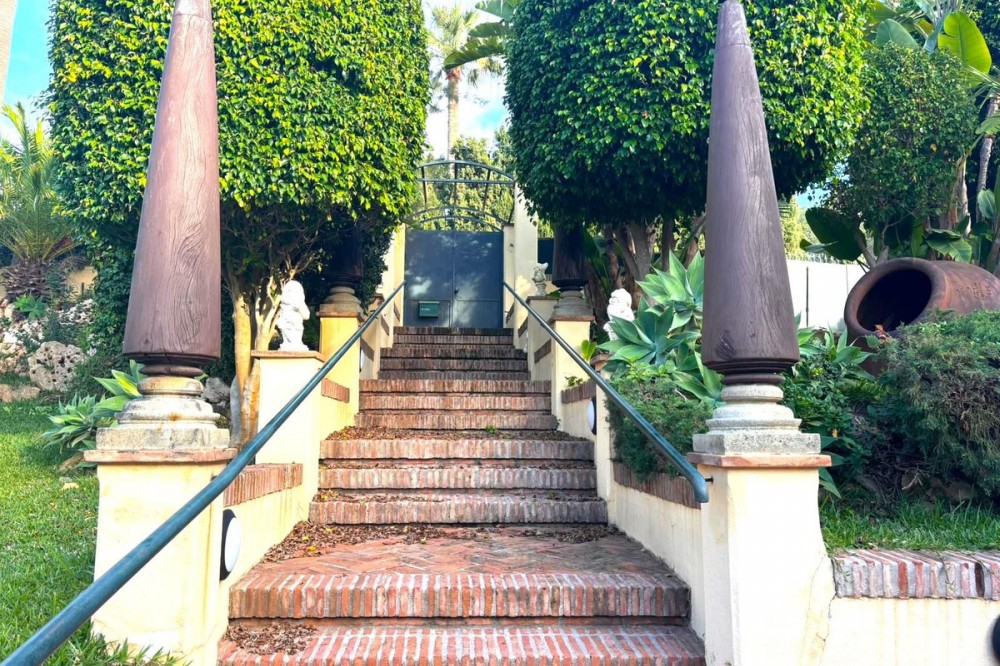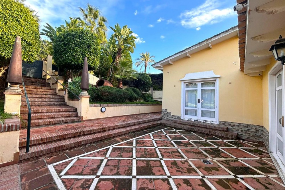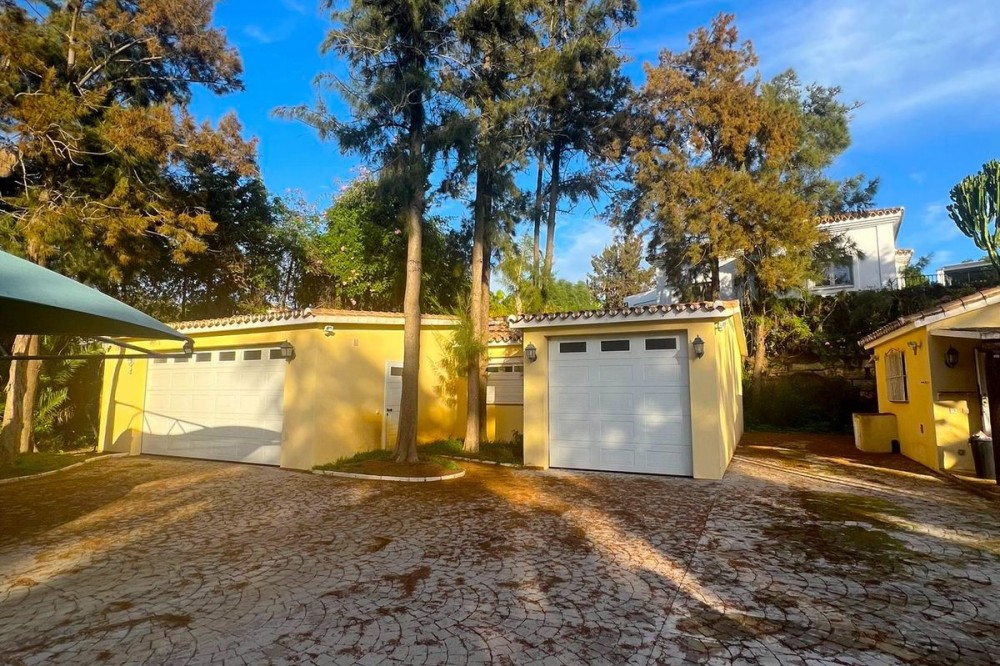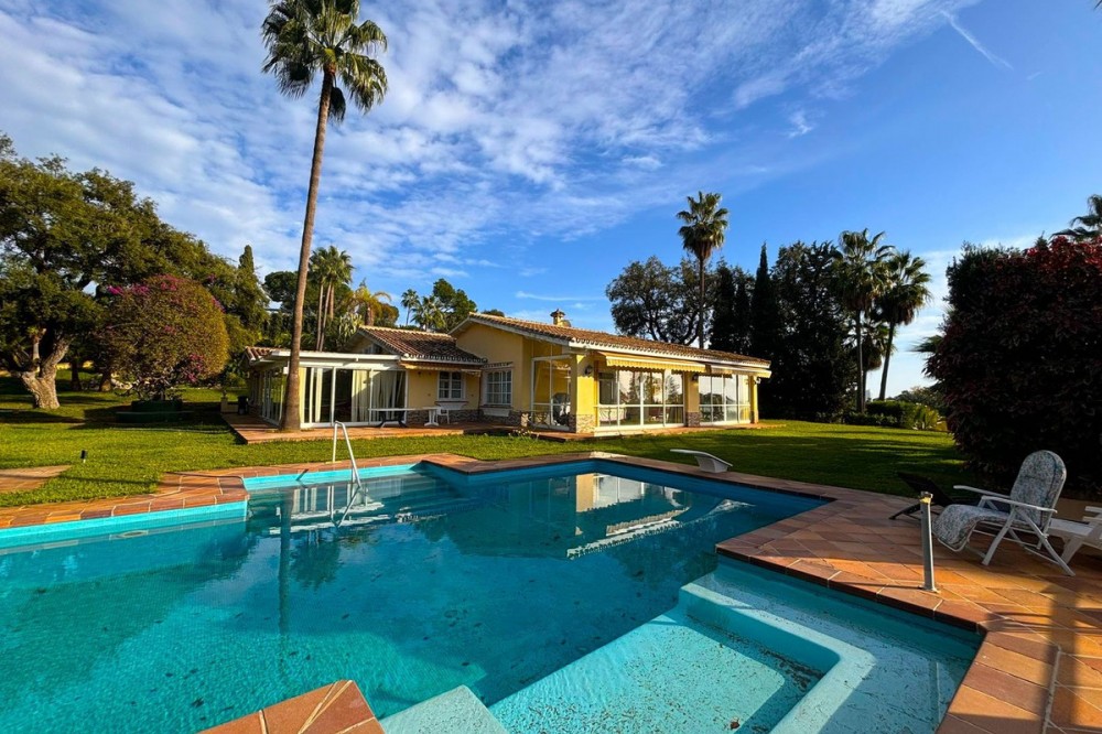 - This property offers a unique opportunity for investors or those looking to develop an exclusive residential project in the prestigious area of Elviria. With a plot of 5,200m², the land is mostly flat, with easy access and a slight southwest slope that provides open sea views. It is divided into two flat platforms: one to the south, where the pond is located, and another to the west, where the auxiliary service house is situated. The plot has the potential to be divided into 5 independent plots, allowing for the construction of 5 individual villas. With a minimum plot size of 1,000 m² in the area, this property offers an excellent opportunity to maximize return on investment. The property currently includes a single-storey house with 6 bedrooms, 5 bathrooms, and spacious porches, as well as a garden with a heated pool, its own well, a pond with lighting, and an irrigation system. It also features auxiliary buildings such as a garage (170 m²), a service house (40 m²), and a workshop (20 m²). Located in an exclusive area near white sandy beaches, golf courses, and the Elviria Shopping Center. With high-end services, international schools, restaurants, 24/7 security, and easy access to Marbella and 25 minutes to Málaga Airport, this property combines a privileged location with great investment potential. Elviria is the perfect place to live or invest.