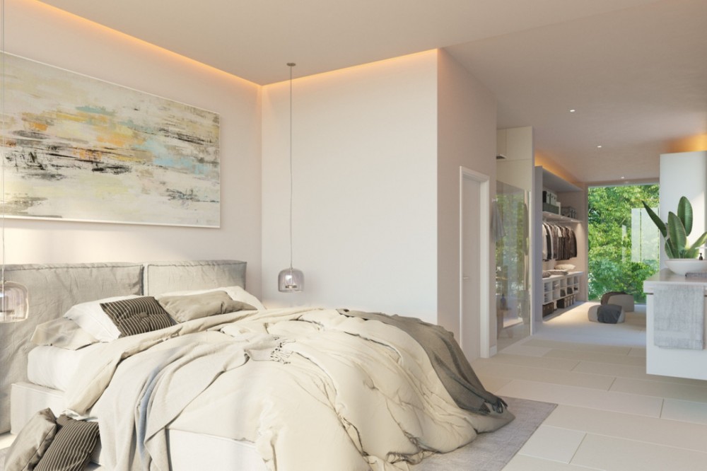 - New Development: Prices from €2,950,000 to €2,950,000. [Bedrooms: 5] [Bathrooms: 5] [Built size: 504m2]. Characterised by the visual strength of its organic forms and spectacular sea views, this home stands as the villa of nature. Dressed in white with touches of wood that go hand in hand to create a suggestive visual play of textures.