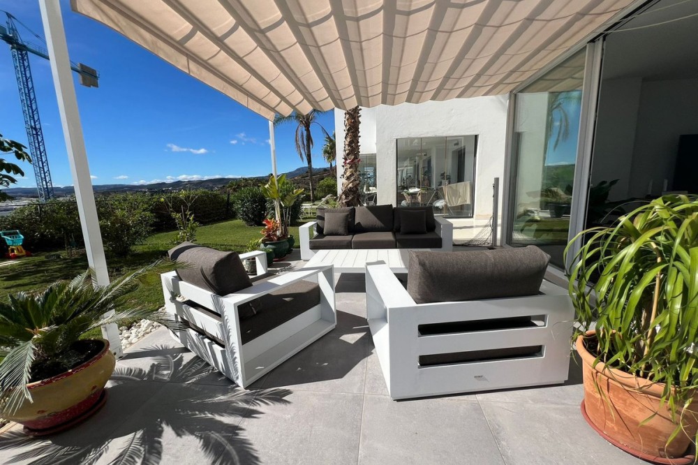 - Live in apartement whit house feeling Among the most luxurious properties on the entire Costa del Sol, this stunning 4-bedroom, 3-bathroom ground-floor apartment offers breathtaking south-facing sea views. The apartment features spacious areas with an open-plan layout and is finished to the highest quality. The community offers exceptional amenities, including restaurants, a gym, paddle courts, and two large swimming pools, with 24-hour security ensuring your peace of mind. Located just 800 meters from the town center and 600 meters from the Mercadona supermarket, this is one of the best locations in Costa del Sol. The property includes two garage spaces and a storage room, along with plenty of free parking outside. Experience the feeling of living in a house while enjoying all the advantages of apartment living – you won’t find anything better. Mirador de Estepona Hills is a renowned and highly sought-after development, loved by all Estepona enthusiasts.