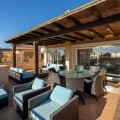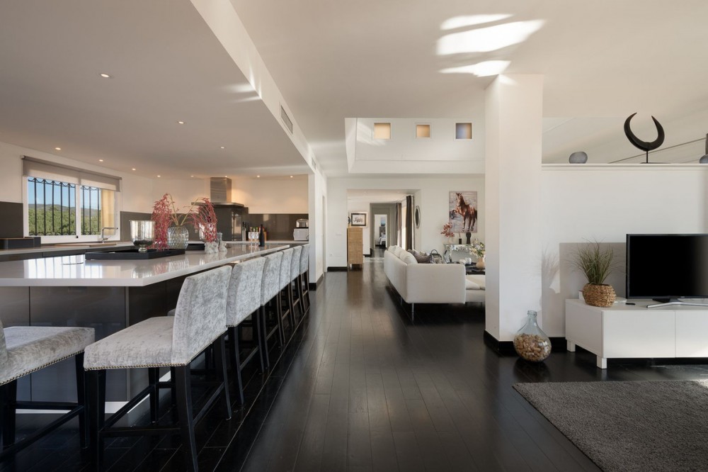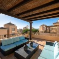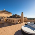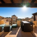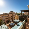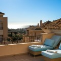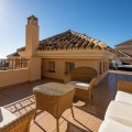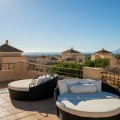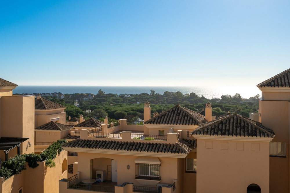- This stunning duplex penthouse in Elviria presents a unique opportunity for both investment and personal enjoyment, boasting unparalleled sea views and a prime location just moments from all amenities and the beach in Elviria. With generous proportions and a sleek, modern design, the property features four spacious bedrooms, each with its own en-suite bathroom, plus an additional guest toilet conveniently located next to the living area. The bedrooms are thoughtfully arranged over two levels to ensure maximum comfort and privacy. Upon entering the penthouse from either the garage or the main entrance, the private elevator opens into a welcoming foyer that leads into a bright and airy living room with soaring ceilings, creating a sense of openness and elegance. This level also includes a formal dining area, and a contemporary, open-plan kitchen equipped with high-end appliances, including a professional ice maker. A large wraparound terrace encircles the entire apartment, offering over 200 m² of outdoor space and direct access to the community pools. Two of the bedrooms and bathrooms are located on this floor, providing ample comfort and functionality. Each room features beautiful, custom-built wardrobes with wood lining, designed for both style and practicality. The bathrooms are equipped with automatic solar-powered ventilation, ensuring comfort and sustainability. On the upper level, you'll find two additional bedrooms, two bathrooms, and a spacious private terrace — ideal for relaxation while enjoying panoramic sea views. Throughout the penthouse, beautiful wooden floors add warmth and sophistication to every room. Notably, all the bedrooms are furnished with premium “Jensen” brand beds, ensuring ultimate comfort and luxury. The penthouse is ideally situated with direct access to the community pools, which are easily visible from the terrace, making it a perfect family home, especially for those with young children. Additional features include two parking spaces and a storage room, adding convenience and practicality. Whether as a year-round residence or a luxurious holiday retreat, this penthouse perfectly blends comfort, style, and an enviable location in Elviria, Marbella.