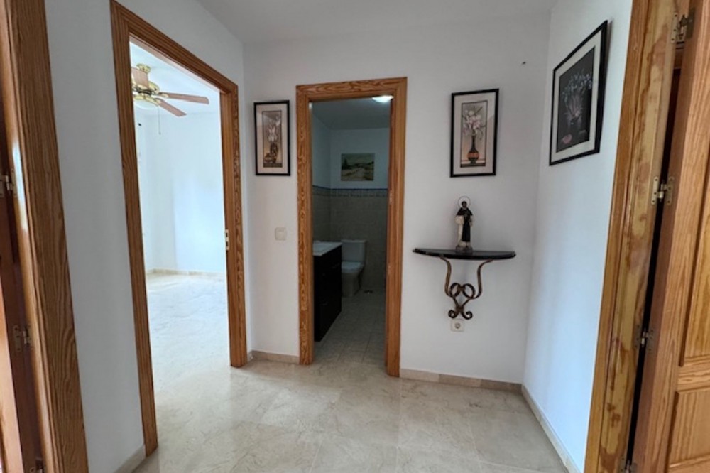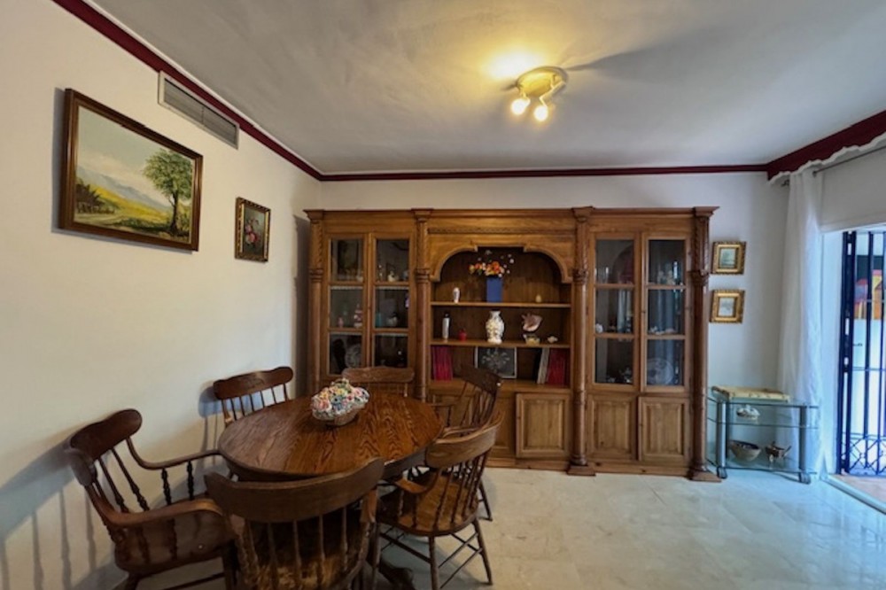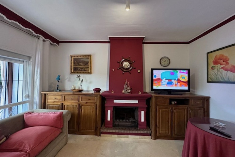 - Nice townhouse is located in the sought after area of San Pedro de Alcántara. The house is located only a few minutes walking distance from the center of San Pedro and only 3 minutes by car from the beach. Entering the property you will find the spacious kitchen with a dining table, wooden floors, and direct access to the terrace. Continuing through the ground floor of the house you will find a spacious combined living and dining room where you can relax by the cozy fireplace. Walking back in the direction of the entrance you will find a guest bathroom located next to the staircase leading to the first and second floor. Here, on the first floor, you will find the big master bedroom with en suite bathroom. Also located on this floor is a guest bedroom, a guest bathroom, and an additional room with space to be used as an office or to be converted into a bedroom. Continuing up the stairs to the second floor you will find two spacious rooms with the potential and space to be additional bedrooms or multipurpose rooms, and a guest bathroom. This house also boasts of an terrace on the top floor of the house. Only a short stroll from the house you will find lots of nice restaurants, bars, gyms, and shops. In addition to the amazing location in San Pedro, the house is only 5 minutes from famous Puerto Banus and just 15 minutes from Marbella city center.