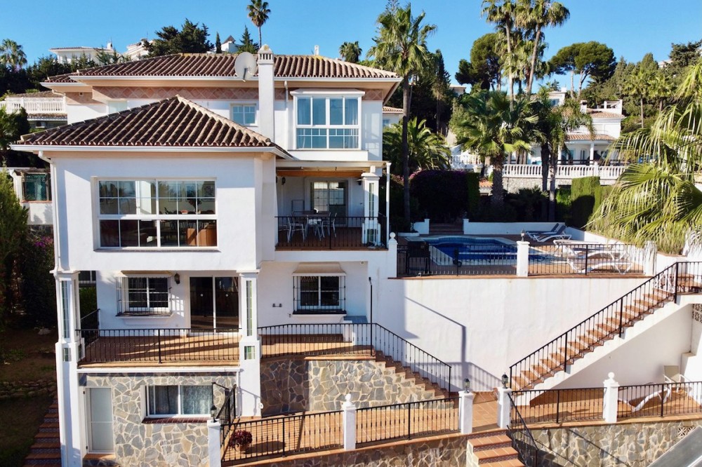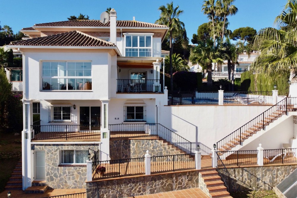 - Location! Location! Location ! Price reduced in Prime area! High Renting Income !!!!!!! In the beautiful and attractive town on the Costa del Sol, La Cala de Mijas (Torrenueva), you will find this fantastic three-story villa with views of the Mediterranean Sea and Spain's Costa del Sol. Just half an hour from Malaga airport by car, you drive two minutes from the main road up towards the mountain and enter a large entrance hall with high ceilings, from where you have access to the villa's bright ground floor and upper floor, lower floor, stylish kitchen, living room with high ceilings, swimming pool and lovely terrace. With a total of 6 bedrooms ( 3 ensuits )4 bathrooms, 1 guest toilet , 2 Living rooms, two kitchens, two entrances, a garage with space for one car and a double garage with space for two cars, there is guaranteed room for the whole family and friends. The home can be divided, with a separate lower floor with three bedrooms, three bathrooms, private entrance and double garage, kitchen and living room. For example, you can have two families stay, rent the home to two families, or rent it to one family, while you yourself stay separately in the villa, with separate garages and entrances from two different streets. On the ground floor you will find one room and one bathroom with living room, kitchen, terrace and pool. If you go up to the first floor, you will find two en-suite bedrooms, where you can wake up with a view of the Mediterranean Sea. The location is absolutely top! Walking distance to some of the best beaches on the coast, the sea, shops, restaurants and driving distance to popular areas such as Marbella and Málaga The villa is centrally located, where you don't hear city and road noise, but get the most beautiful views of various other villas, natural areas, mountains and sea That way you are private, but close to everything . Book a viewing and experience this bright, spacious and beautiful three-story villa with your own eyes Easy viewing 24/7