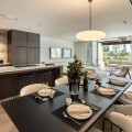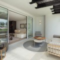 - Iberis 12 is a stunning modern apartment sporting sea views within the exclusive enclave of the Puente Romano Resort on the Marbella Golden Mile. Iberis 12 exudes seaside sophistication, embracing its resort surroundings to depict the luxurious Mediterranean lifestyle. The apartment boasts a stunning covered and ample terrace, catering to alfresco dining and a chill-out area. From the terrace, residents can bask in the beautiful community garden and sea views, creating a relaxing atmosphere. The terrace has direct access to the property’s living area and master bedroom thanks to the floor to ceiling glass sliding doors. The modern and sophisticated interior design can be appreciated through the open-plan kitchen, dining and living area. All three areas seamlessly blend to create a convenient yet aesthetic living space. Neutral colours and touches of natural wood through the flooring and kitchen cabinets complement the space. Modern furniture and finishes elegantly decorate the space, maximising comfort and practicality, while also remaining pleasing to the eye. The fully equipped kitchen sports a stunning kitchen island with marble finished on the counter, which is also present throughout the kitchen. Kitchen appliances can be taken out of site thanks to their position within a cupboard, allowing one to declutter the space. All bedrooms are well appointed and decorated with the finest materials and furnishings, while sticking to the interior design colour pallet. The bedrooms also have their own en-suite bathroom. The master bedroom is an elegant and cosy space, the ideal place to relax and unwind. A privacy glass window separates the bedroom from the bathroom where one can appreciate the stunning grey stone used for the double vanity, shower and bathtub. With its convenient location within Puente Romano, residents are minutes from the beach and close to all exclusive amenities the Resort and Marbella Golden Mile offers.