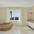 - This exclusive property offers stunning views of the sea, the Spanish and African coasts and Gibraltar and is situated in a very private and protected location in the elegant and gated Marbella Club Golf Resort. Built with the highest quality; solid wooden floors, Travertino marble, custom made windows, excellent isolation, very modern domotic system, solar and heat pumps for hot water and heating, individually adjustable underfloor heating (solar energy) throughout the house, illuminated and heated swimming pool, poolside barbecue area, spa and gym area, wine cellar, elegant eat-in kitchen, spacious ensuite bedrooms with adjoining bathrooms, are just some of the many outstanding amenities of this beautiful home. The garden is a dream, it has been lovingly landscaped and planned by its owners and has a fully automatic irrigation system. The flat plateau plot has been secured on all sides and is well fenced. Marbella Club Golf Resort with its 18-hole golf course is very privileged and private, yet only 20 minutes away from Marbella, located in the middle of the beautiful Benahavis mountains. This residential area has a gated entrance and 24-hour security. Marbella Club Golf Resort has a wonderful restaurant just 10min walk from the villa where You can enjoy a wonderful meal and a glass of wine.