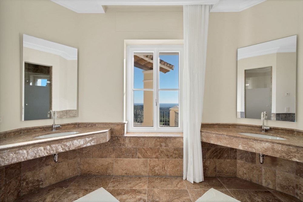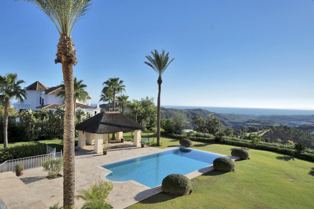- This exclusive property offers stunning views of the sea, the Spanish and African coasts and Gibraltar and is situated in a very private and protected location in the elegant and gated Marbella Club Golf Resort. Built with the highest quality; solid wooden floors, Travertino marble, custom made windows, excellent isolation, very modern domotic system, solar and heat pumps for hot water and heating, individually adjustable underfloor heating (solar energy) throughout the house, illuminated and heated swimming pool, poolside barbecue area, spa and gym area, wine cellar, elegant eat-in kitchen, spacious ensuite bedrooms with adjoining bathrooms, are just some of the many outstanding amenities of this beautiful home. The garden is a dream, it has been lovingly landscaped and planned by its owners and has a fully automatic irrigation system. The flat plateau plot has been secured on all sides and is well fenced. Marbella Club Golf Resort with its 18-hole golf course is very privileged and private, yet only 20 minutes away from Marbella, located in the middle of the beautiful Benahavis mountains. This residential area has a gated entrance and 24-hour security. Marbella Club Golf Resort has a wonderful restaurant just 10min walk from the villa where You can enjoy a wonderful meal and a glass of wine.
