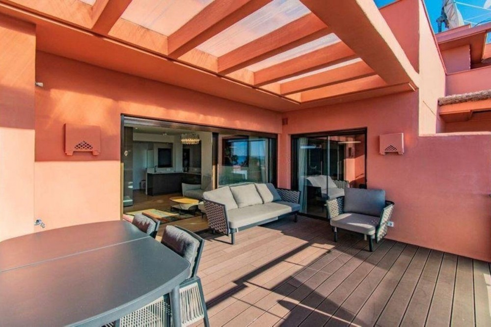 - A fully renovated penthouse blending elegant design with breathtaking sea views. Situated in the exclusive New Golden Mile area of Estepona, between Marbella and Estepona, it offers walking access to the beach and is just minutes away from shops, restaurants, Puerto Banús, and the region’s finest golf courses. This spacious duplex penthouse features three bright bedrooms, three modern bathrooms with underfloor heating, a stylish living room with an integrated kitchen, a terrace with sea views, and a large solarium on the upper floor. The property includes a convenient parking space and a storage room. Located in a prestigious gated community, the property offers 24-hour security, an outdoor pool, a heated indoor pool, a SPA, a sauna, and a fitness center. An ideal home for those who want to enjoy comfort, luxury, and magnificent views in one of the most exclusive areas on the Costa del Sol.