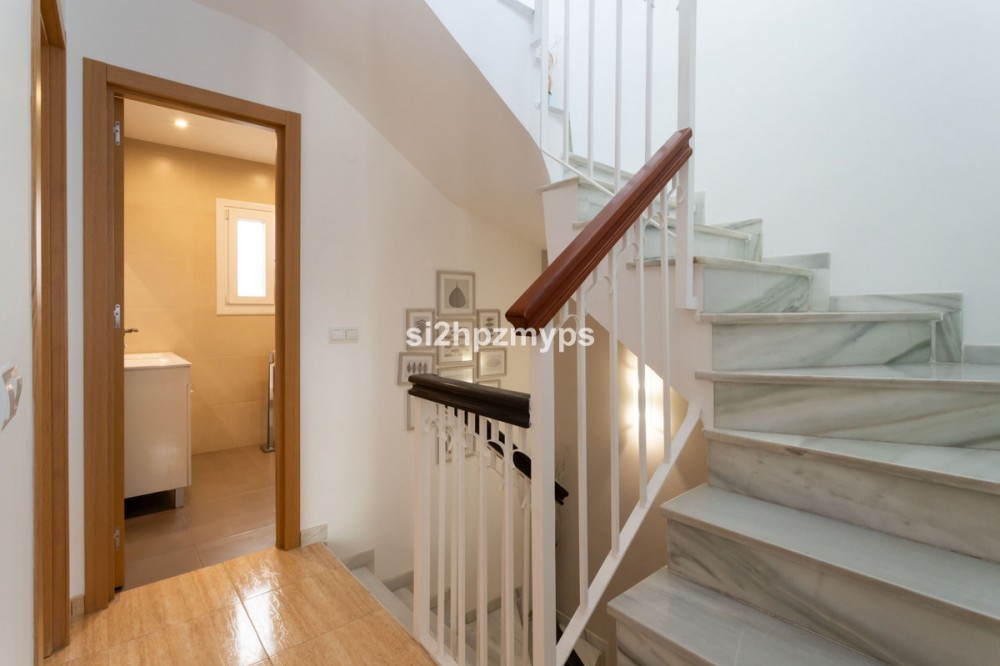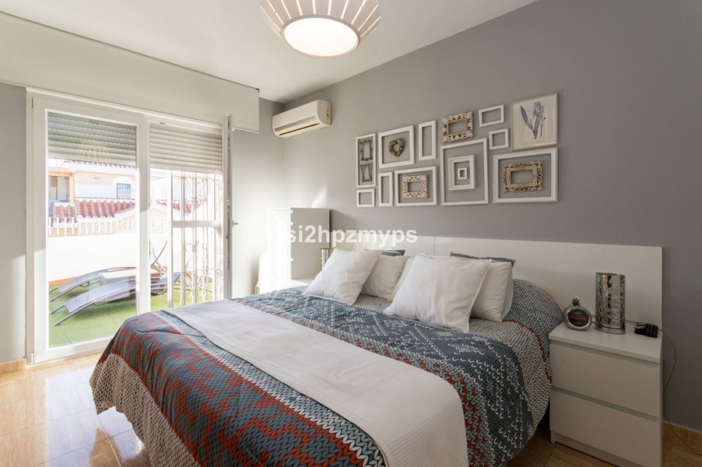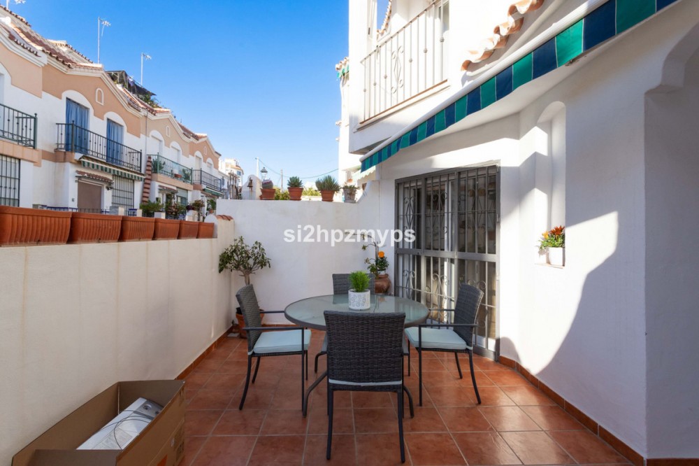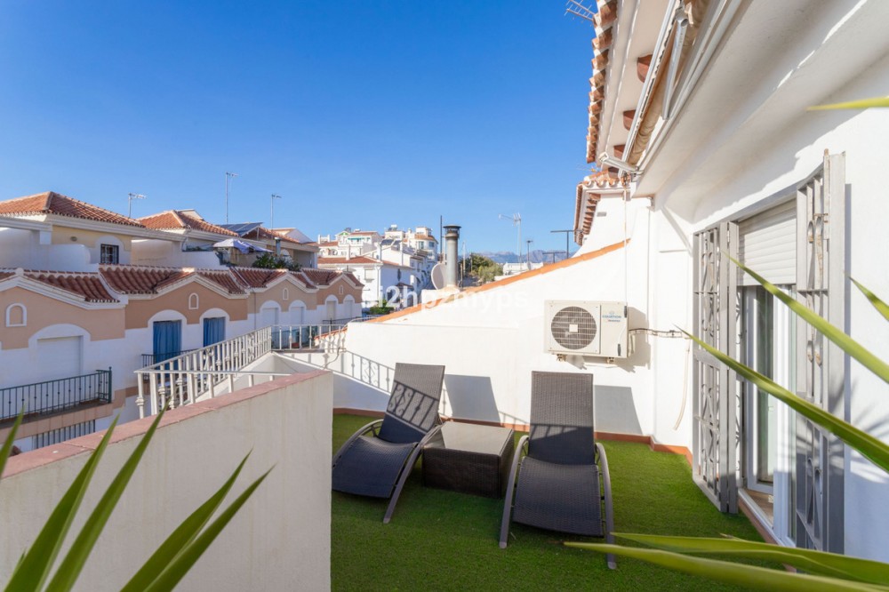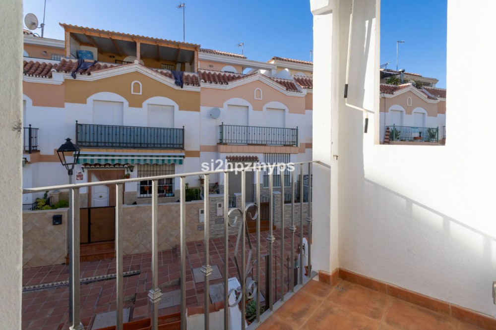 - Townhouse in Torrox Costa with 4 bedrooms and a roof terrace near the beach Welcome to this south-west facing townhouse in very good condition, located in popular Torrox Costa. The house is in perfect condition and has 4 bedrooms, a patio, a porch by the entrance, roof terrace and balcony - only 200 meters from the beach! If you want to live close to all amenities such as grocery stores, restaurants, pharmacies and the bus station, this is it! The house consists of three floors: - Ground floor with a large living room/dining room, kitchen with patio, storage room, toilet and a nice veranda by the entrance of the house. - The first floor has three bedrooms, one with a large balcony and a bathroom. - On the second floor you will find the master bedroom with an ensuite and a sunny roof terrace. There is a communal pool in the urbanization and fee is only €30 per month! Free parking in the street. Contact us today to schedule a viewing! NOTE! Fixed price