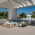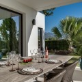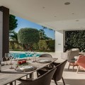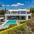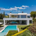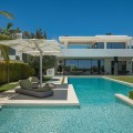 - This exceptional villa is nestled within an exclusive gated community in Marbella’s prestigious Golden Mile. Set on a generous south-facing plot, the property is bathed in natural sunlight and enjoys breathtaking panoramic sea views from both floors, creating a serene and luxurious coastal retreat. For the future owner, a brand-new high-quality kitchen from Siematic or equivalent will be included, offering the option to replace the existing one. The buyer also enjoys the exclusive opportunity to tailor the design, materials, and appliances to perfectly reflect their personal style and preferences. Designed by renowned architects Cristian Larrain K. and Rodolfo Nonini, the villa stands as a striking example of modern architectural excellence. Its crisp white façade, symmetrical lines, and lush greenery create an elegant yet inviting aesthetic. The rooftop terrace crowns the residence, offering uninterrupted sea views and iconic La Concha Mountain. The outdoor spaces are equally impressive, featuring breathtaking sea views, private pool, stylish terraces, and a meticulously landscaped garden – ideal for both relaxation and entertaining. Inside, the home exudes contemporary sophistication. The open-plan living area is enhanced by ambient ceiling lighting and a soft neutral color palette, creating a warm and welcoming atmosphere. The dining area flows seamlessly into the kitchen and social zones, making it perfectly suited for both everyday living and special occasions. A high-end indoor/outdoor sound system ensures effortless entertainment throughout. The kitchen itself is spacious, functional, and beautifully appointed, with ample storage, generous worktops, and a cozy breakfast nook. Each bedroom is a private retreat, featuring refined finishes and its own en-suite bathroom. The master suite, occupying the entire upper level, offers the ultimate in privacy and comfort, complete with walk-in closet, freestanding bathtub, double vanity, and floor-to-ceiling windows framing spectacular sea views. Further amenities include a state-of-the-art entertainment room, home cinema, wine cellar, gym, elevator, and three-car garage – all thoughtfully designed for modern luxury living. For complete peace of mind, the community provides full-time staff who oversee the maintenance of the pool and gardens. Optional property management services are also available, ensuring a truly turnkey lifestyle. This serene and secure neighborhood offers a rare balance of tranquility and convenience. While tucked away in peaceful surroundings, the villa remains within walking distance of the beach and Marbella’s vibrant Golden Mile. Residents enjoy proximity to world-class dining and lifestyle venues such as Puente Romano, Alba by Serafina, Besaya Beach, and the stylish Boho Club. This is more than a home – it is a seamless blend of elegance, comfort, and exclusivity, where every detail has been carefully curated to deliver the finest in Mediterranean living.