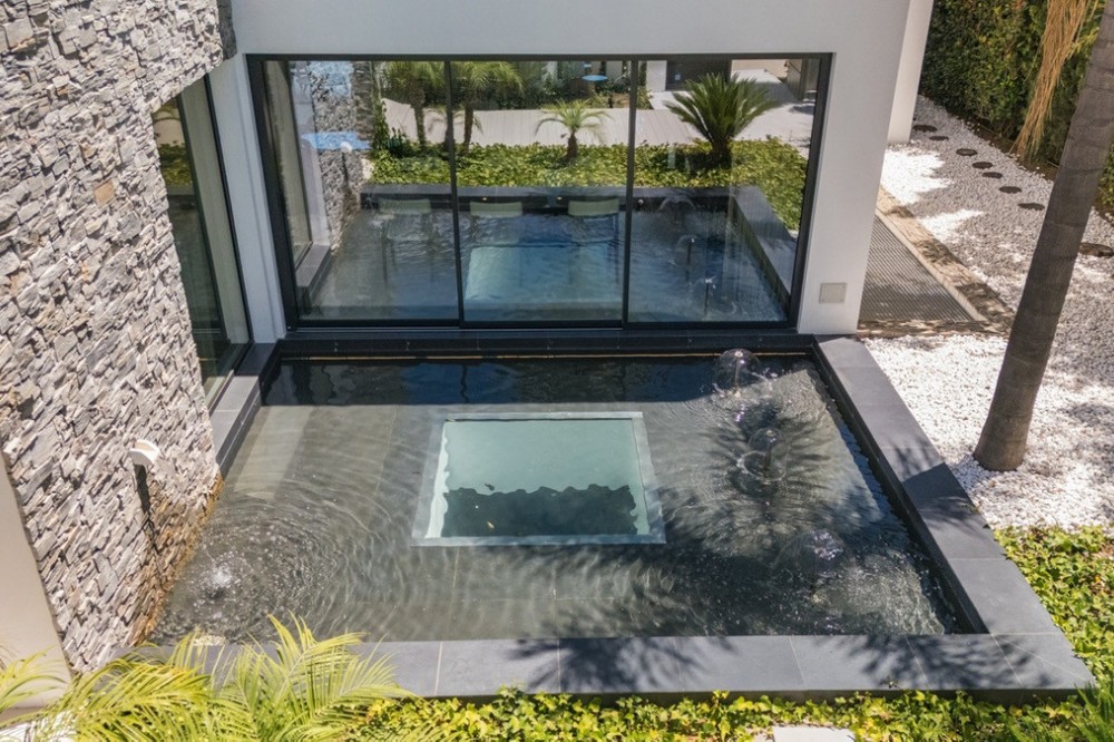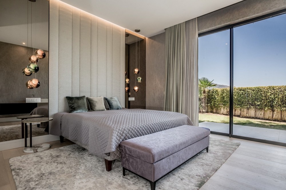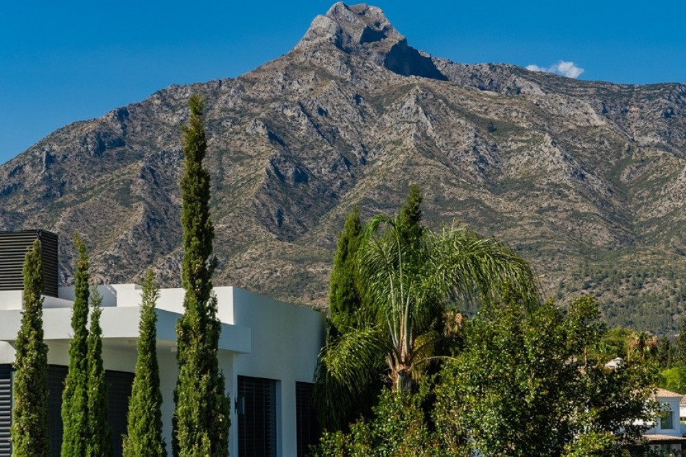 - This exceptional villa is nestled within an exclusive gated community in Marbella’s prestigious Golden Mile. Set on a generous south-facing plot, the property is bathed in natural sunlight and enjoys breathtaking panoramic sea views from both floors, creating a serene and luxurious coastal retreat. For the future owner, a brand-new high-quality kitchen from Siematic or equivalent will be included, offering the option to replace the existing one. The buyer also enjoys the exclusive opportunity to tailor the design, materials, and appliances to perfectly reflect their personal style and preferences. Designed by renowned architects Cristian Larrain K. and Rodolfo Nonini, the villa stands as a striking example of modern architectural excellence. Its crisp white façade, symmetrical lines, and lush greenery create an elegant yet inviting aesthetic. The rooftop terrace crowns the residence, offering uninterrupted sea views and iconic La Concha Mountain. The outdoor spaces are equally impressive, featuring breathtaking sea views, private pool, stylish terraces, and a meticulously landscaped garden – ideal for both relaxation and entertaining. Inside, the home exudes contemporary sophistication. The open-plan living area is enhanced by ambient ceiling lighting and a soft neutral color palette, creating a warm and welcoming atmosphere. The dining area flows seamlessly into the kitchen and social zones, making it perfectly suited for both everyday living and special occasions. A high-end indoor/outdoor sound system ensures effortless entertainment throughout. The kitchen itself is spacious, functional, and beautifully appointed, with ample storage, generous worktops, and a cozy breakfast nook. Each bedroom is a private retreat, featuring refined finishes and its own en-suite bathroom. The master suite, occupying the entire upper level, offers the ultimate in privacy and comfort, complete with walk-in closet, freestanding bathtub, double vanity, and floor-to-ceiling windows framing spectacular sea views. Further amenities include a state-of-the-art entertainment room, home cinema, wine cellar, gym, elevator, and three-car garage – all thoughtfully designed for modern luxury living. For complete peace of mind, the community provides full-time staff who oversee the maintenance of the pool and gardens. Optional property management services are also available, ensuring a truly turnkey lifestyle. This serene and secure neighborhood offers a rare balance of tranquility and convenience. While tucked away in peaceful surroundings, the villa remains within walking distance of the beach and Marbella’s vibrant Golden Mile. Residents enjoy proximity to world-class dining and lifestyle venues such as Puente Romano, Alba by Serafina, Besaya Beach, and the stylish Boho Club. This is more than a home – it is a seamless blend of elegance, comfort, and exclusivity, where every detail has been carefully curated to deliver the finest in Mediterranean living.