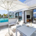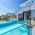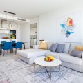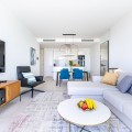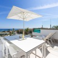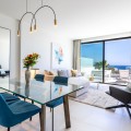 - Exclusive Modern Apartment in Santa Barbara Heights – Mijas Costa Stunning Sea Views, Private Pool and Luxury Communal Facilities This stylish and contemporary 110 m² apartment is located in the sought-after Santa Barbara Heights within Club La Costa World Resort, Mijas Costa. The property combines luxury, comfort, and functionality with breathtaking views of the Mediterranean Sea. The apartment features two bedrooms with en-suite bathrooms, a guest toilet, and a modern open-plan kitchen fitted with top-quality Miele appliances, including oven, microwave, and dishwasher. The bright and spacious living area boasts large panoramic windows that open onto the 30 m² south and southwest-facing terrace with exceptional sea views. The terrace is elegantly furnished with a dining table for six and includes a private plunge pool (2x2 m) with glass walls, adding a touch of sophisticated architectural design. Inside, every detail has been designed for comfort and quality: Master Bedroom: Double room with air conditioning, built-in wardrobe, flat-screen TV, en-suite bathroom with spa bath, and direct access to the terrace. Bedroom 2: Double room with air conditioning, wardrobe, flat-screen TV, and en-suite bathroom with shower. The living room includes a sofa bed, providing accommodation for up to 6 guests. The apartment comes with air conditioning and Wi-Fi. The residential complex is gated and secure with a video-monitored entry system. Residents can enjoy premium communal facilities, including: Large swimming pool Children’s pool Fully equipped fitness room Sauna The property is sold fully furnished.