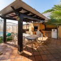 - Located in the quiet urbanization of Ricmar - El Rosario, this magnificent independent villa is located in one of the most privileged areas of Marbella East, in Las Chapas. With a design that combines comfort and elegance, this property is ideal for those looking for a spacious and versatile home close to all essential services. The villa has a built area of 237m2 on a plot of 1,016m2, with an interior surface of 167m2. It is distributed on two floors. On the ground floor there is a large living room with fireplace, a fully equipped kitchen, three bright bedrooms with fitted wardrobes and two bathrooms, one of them with jacuzzi to enjoy moments of relaxation. The upper floor houses an attic with wooden panels, which includes a fourth bedroom and a full bathroom, offering the possibility of transforming it into an independent space. The exterior of the villa is equally impressive. An adjustable indoor pool allows you to enjoy a bathroom at any time of the year. The recreation area includes a barbecue area, an outdoor dining room and a true spicy boat, creating the perfect atmosphere for social gatherings. The private garden is surrounded by fruit trees, offering a quiet and green space to relax. In terms of sustainability, the property is equipped with photovoltaic solar panels, a solar water heating system and its own water well, ensuring energy efficiency and cost savings. The greenhouse is an ideal addition for garden enthusiasts, while security is covered with adapted access and a specialized system. In addition, the villa includes a covered garage for two vehicles and outdoor space for at least three more.