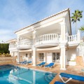 - LOCATION! Charming Detached Villa in El Chaparral - Front Line Golf Location Discover this stunning detached villa, nestled in the most sought-after street of El Chaparral, just a 5 minute drive from the bustling La Cala de Mijas. Boasting a prime front line golf location, this exquisite home offers a perfect blend of elegance and comfort. Spread across two levels, the villa features four spacious bedrooms, including a master suite with an ensuite bathroom, and three additional double bedrooms and three bathrooms on the ground level. There is an additional benefit of underfloor heating in the bathrooms and solar panels for heating water at the property. The heart of the home is a large modern kitchen with a centre island, ideal for culinary enthusiasts, complemented by a separate utility room. The lounge and dining room provide ample space for entertaining, while the sunny south-facing terrace offers breathtaking sea views. Outside, the property showcases a large frontage surrounded by greenery with a stone fountain as a centre piece, a private swimming pool with capacity of 48 m3 with an adjacent washroom / toilet, a large double garage and additional parking on the drive. There is also a large store room. With a plot size of 1,000 m² and 300 m² of constructed area, this villa is a rare find in the area. Built in 1986 and maintained in good condition, it includes fitted wardrobes, a storeroom, and modern heating and air conditioning throughout. Don't miss this opportunity to own a piece of paradise with unparalleled golf and sea views.
