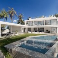 - New Development: Prices from €7,800,000 to €7,800,000. [Bedrooms: 6] [Bathrooms: 7] [Built size: 708m2]. The villa has a unique design where materials are combined and integrated into its surroundings. The mansion offers an unparalleled level of comfort. It has significant indoor and outdoor spaces that are ideal for both daily living and hosting parties or family gatherings. The house is spacious. It has 6 bedrooms, 7 bathrooms, staff room with bathroom, dirty kitchen and covered terraces. A large barbecue area and a spacious solarium allow you to meet friends to have a good time and create unforgettable memories. The terrace by the pool is ideal for relaxing and sunbathing on hot days. Built in complete harmony with its natural surroundings, the mansion offers you the opportunity to live in privacy and enjoy every day incredibly beautiful sea & mountain views.