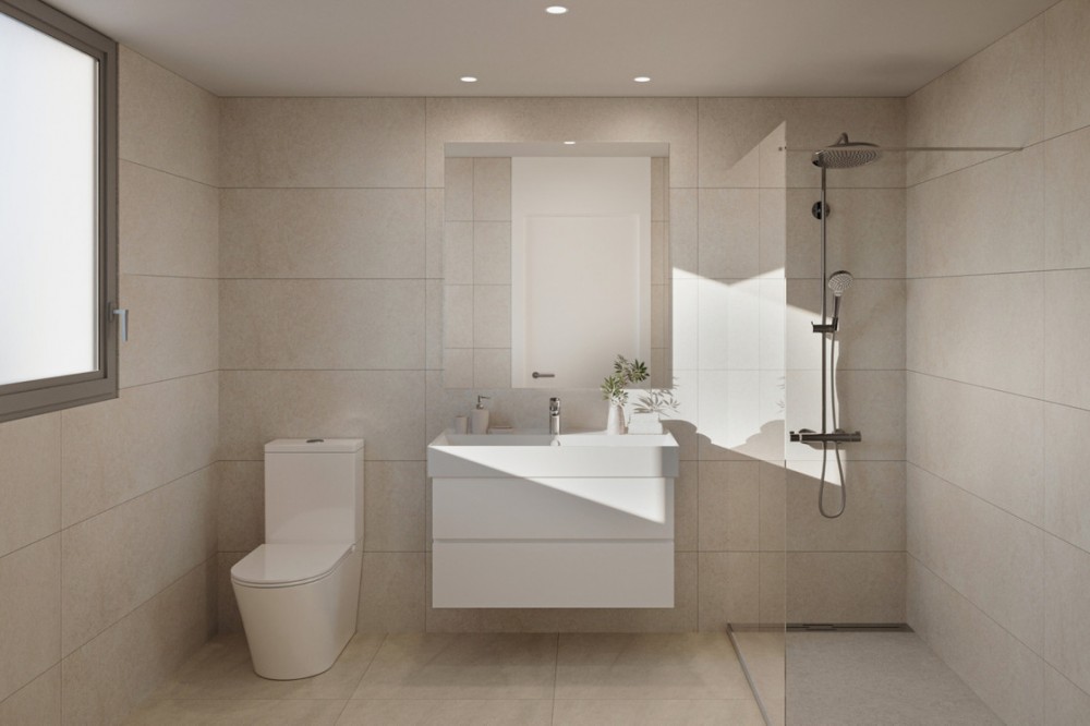 - New Development: Prices from €669,000 to €1,080,000. [Bedrooms: 3] [Bathrooms: 2 - 3] [Built size: 124m2 - 164m2]. This is a development of 74 homes distributed in 4 blocks of 2, 3 and 4 bedrooms, among which we also put at your disposal common garden areas with coworking area and social room with kitchen, putting green. This development has outdoor spaces designed so that you can make the most of the good climate of the Costa del Sol. Your new home incorporates an outdoor swimming pool for adults and children, as well as a heated indoor pool. All homes have a parking space and a storage room, and also include kitchen furniture with all the Siemens/Bosch appliances.